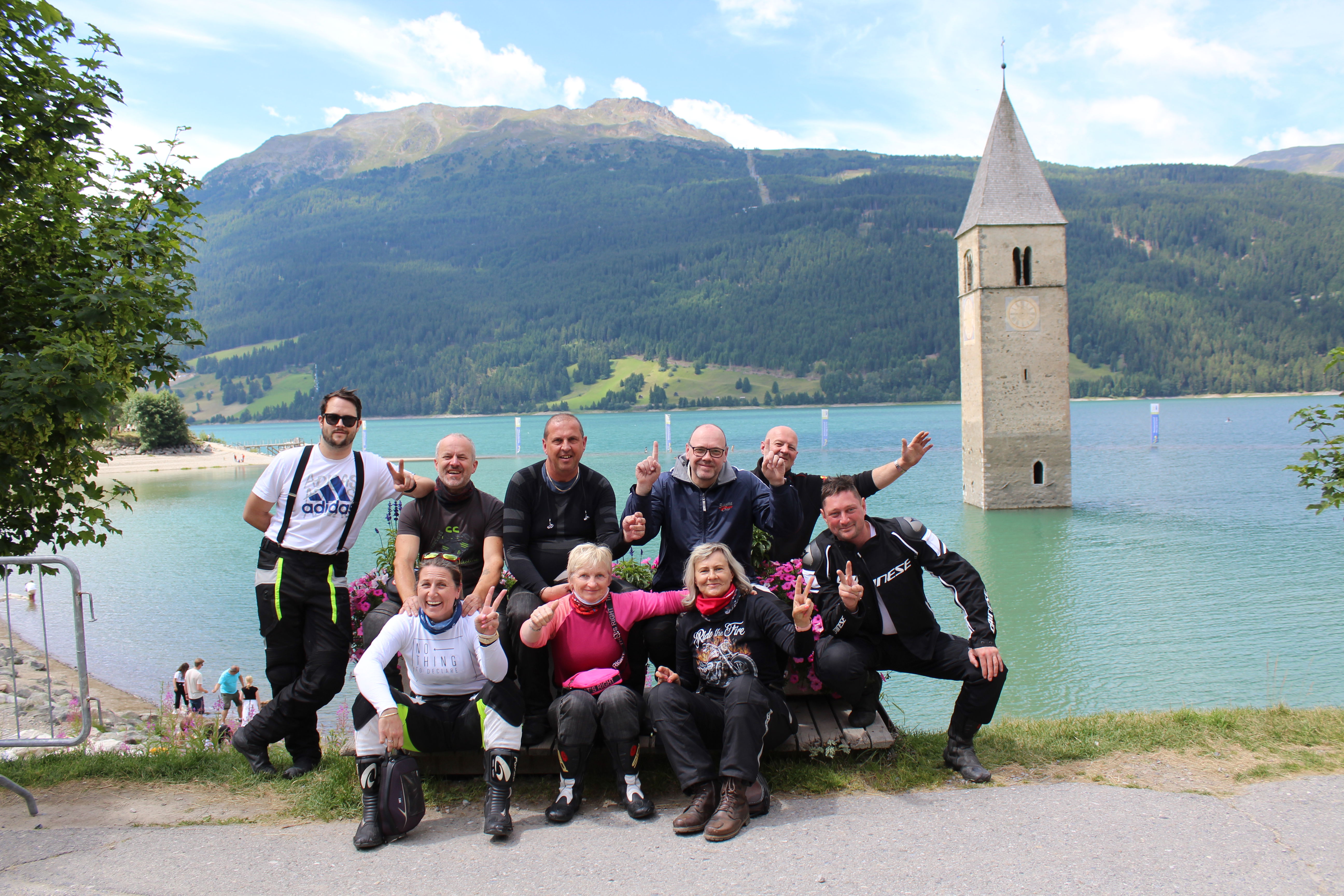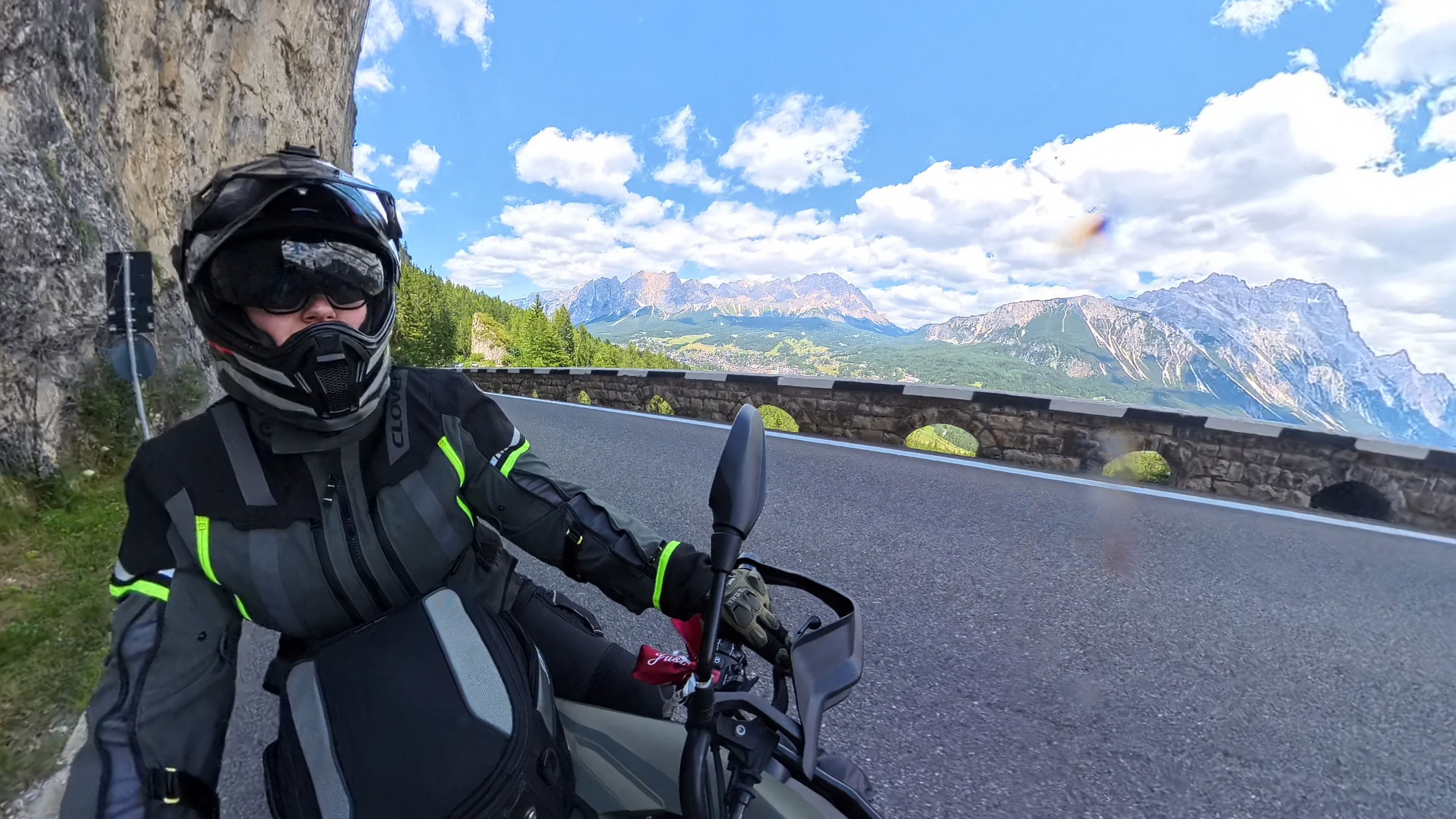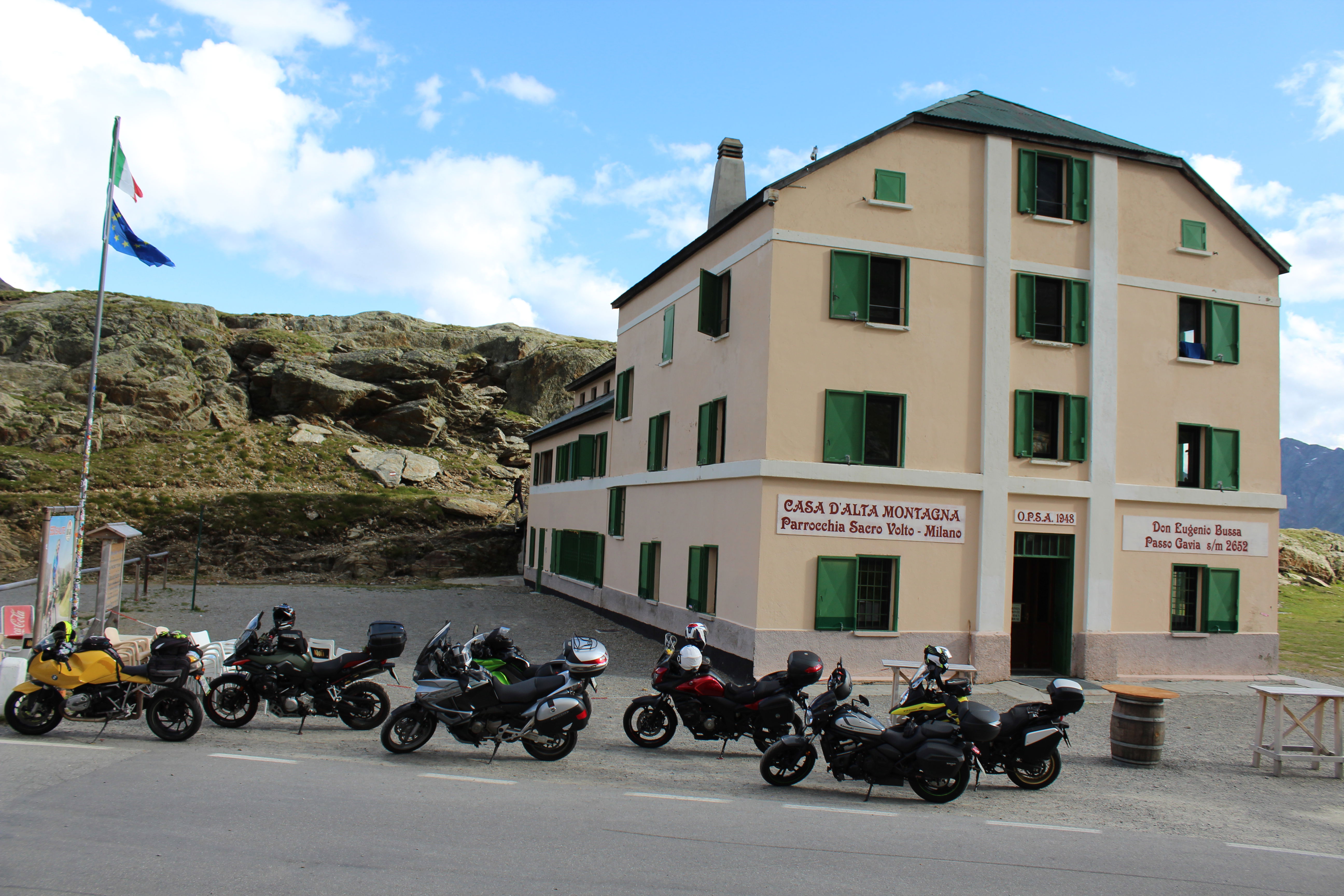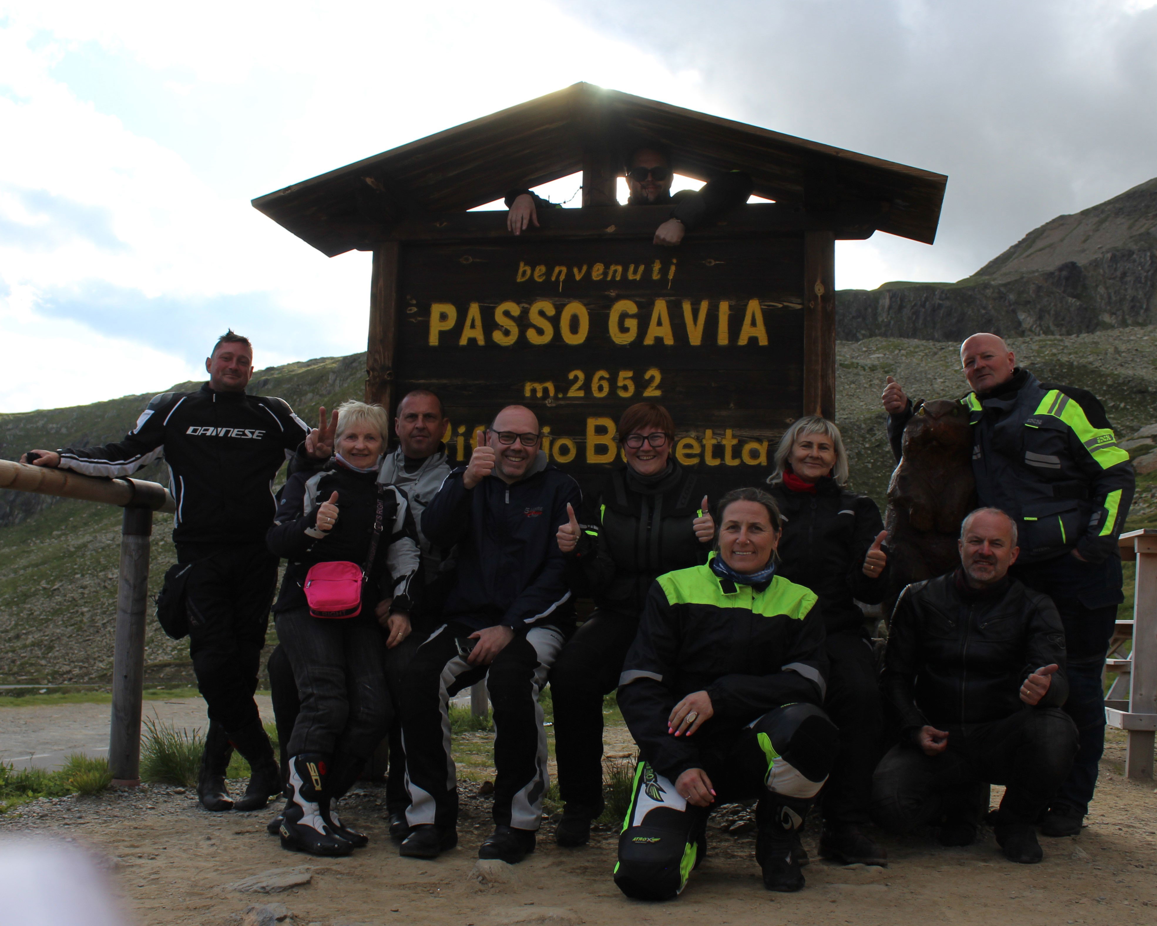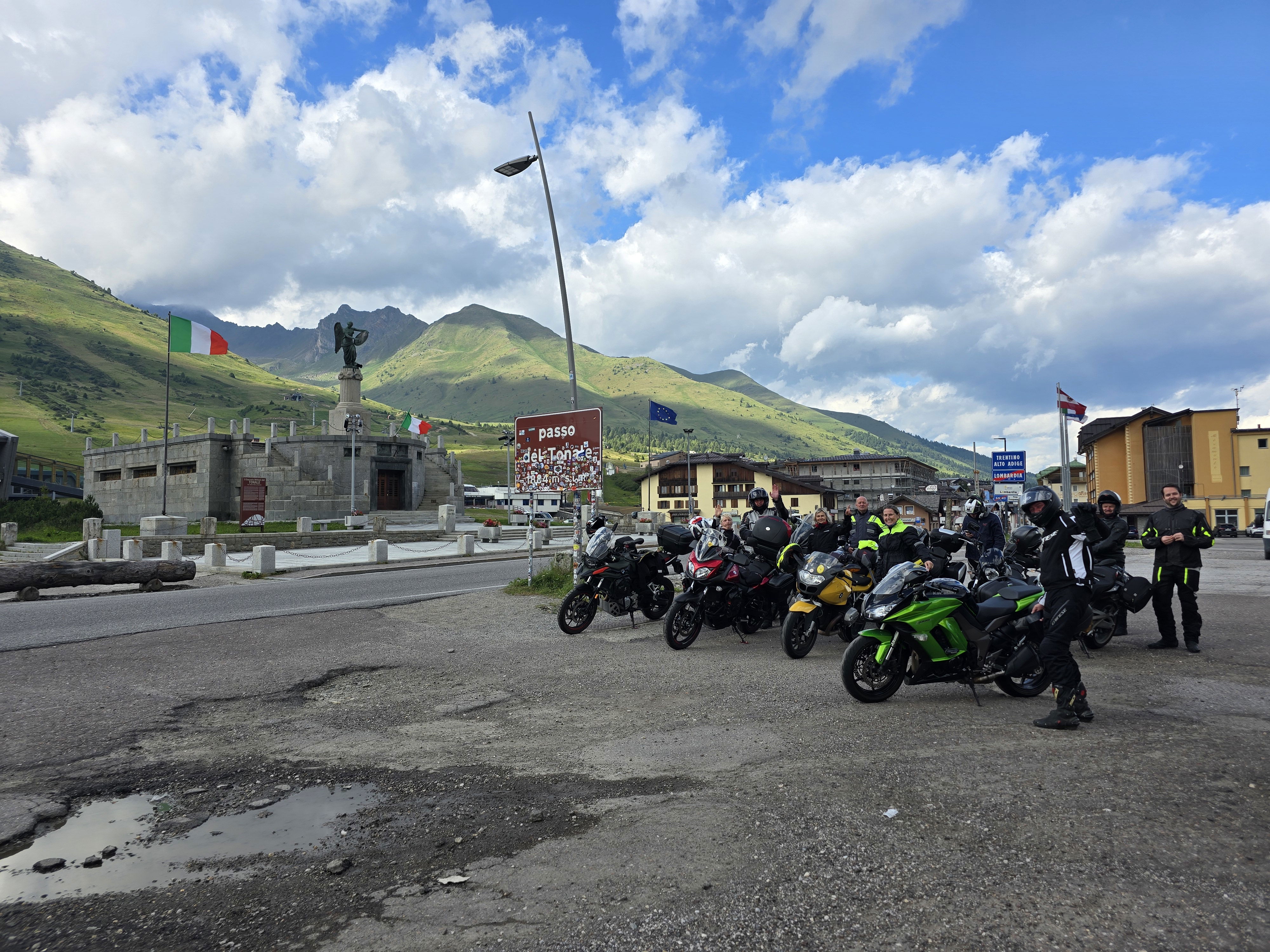 Na Poti na prelaz Gardena imamo kar gnečo, prehitevanje pa nam še dodatno otežujejo vse pogostejše policijske kontrole. Tu se lahko zahvalimo večini nasproti vozečih motoristov, ki nas na kontrole še pravočasno opozorijo s tapkanjem po svojih čeladah (mednarodni znak med motoristi za: “pazi, policija!”). Na prelaze imamo navado, da se peljemo vsak po svoje, na vrhu pa se počakamo. In glej ga zlomka, ko pridemo do vrha tega prelaza, eden od naših manjka. Kakopak, prehiteval je na neprimernem mestu in ustavila ga je policija. Tako to je, vsaka šola nekaj stane. Seveda ga počakamo in se na koncu pošalimo, da bo danes dal za rundo. V kolikor koga zanima, za prehitevanje na neprimernem mestu je plačal 60€ kazni.