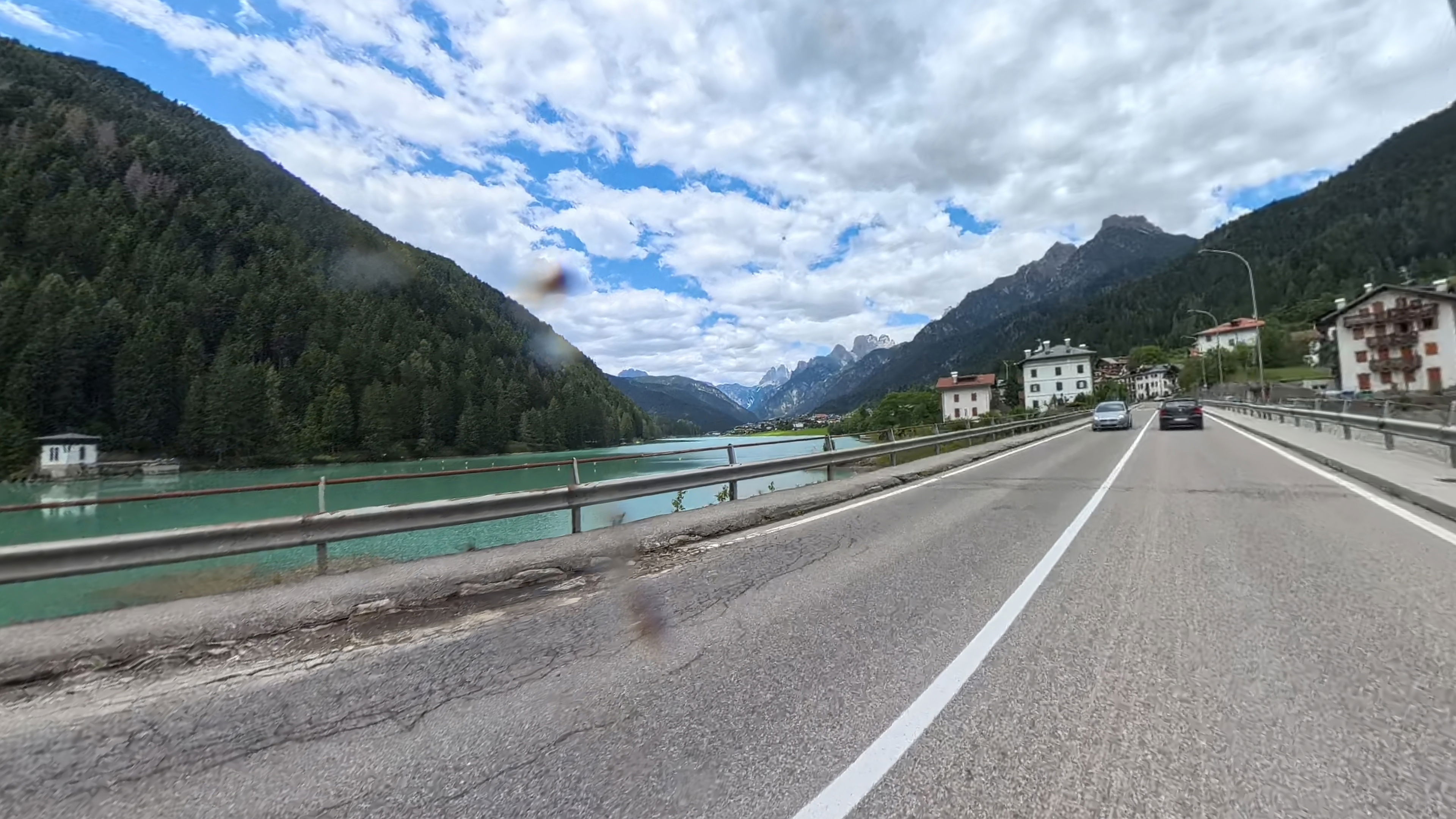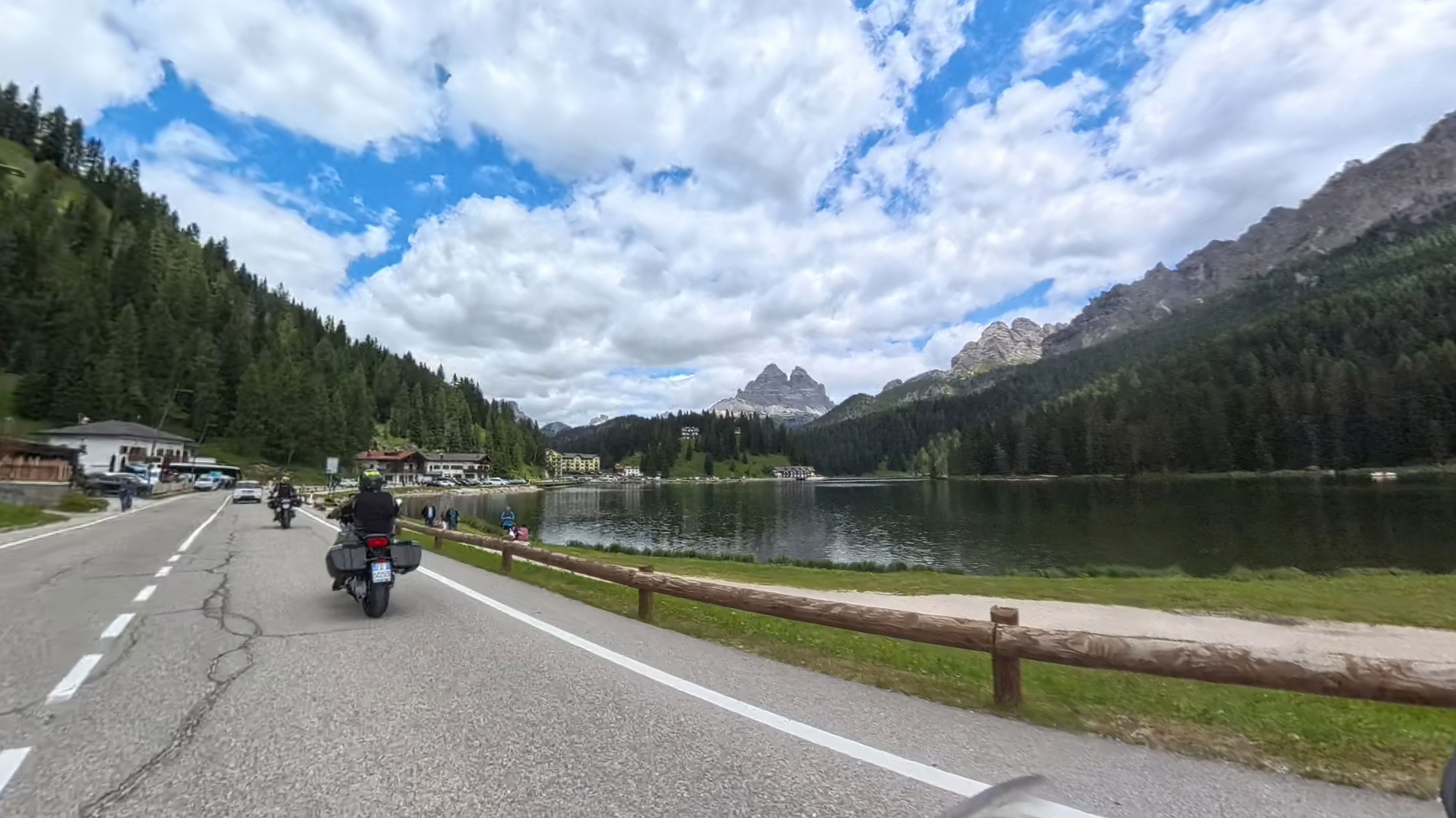 Po dolini se vozimo le kratek čas, cesta proti jezeru Misurina se namreč prične vztrajno vzpenjati. Ob jezeru se ustavimo, da si tudi ostali privoščimo sendvič in gremo na pijačo.