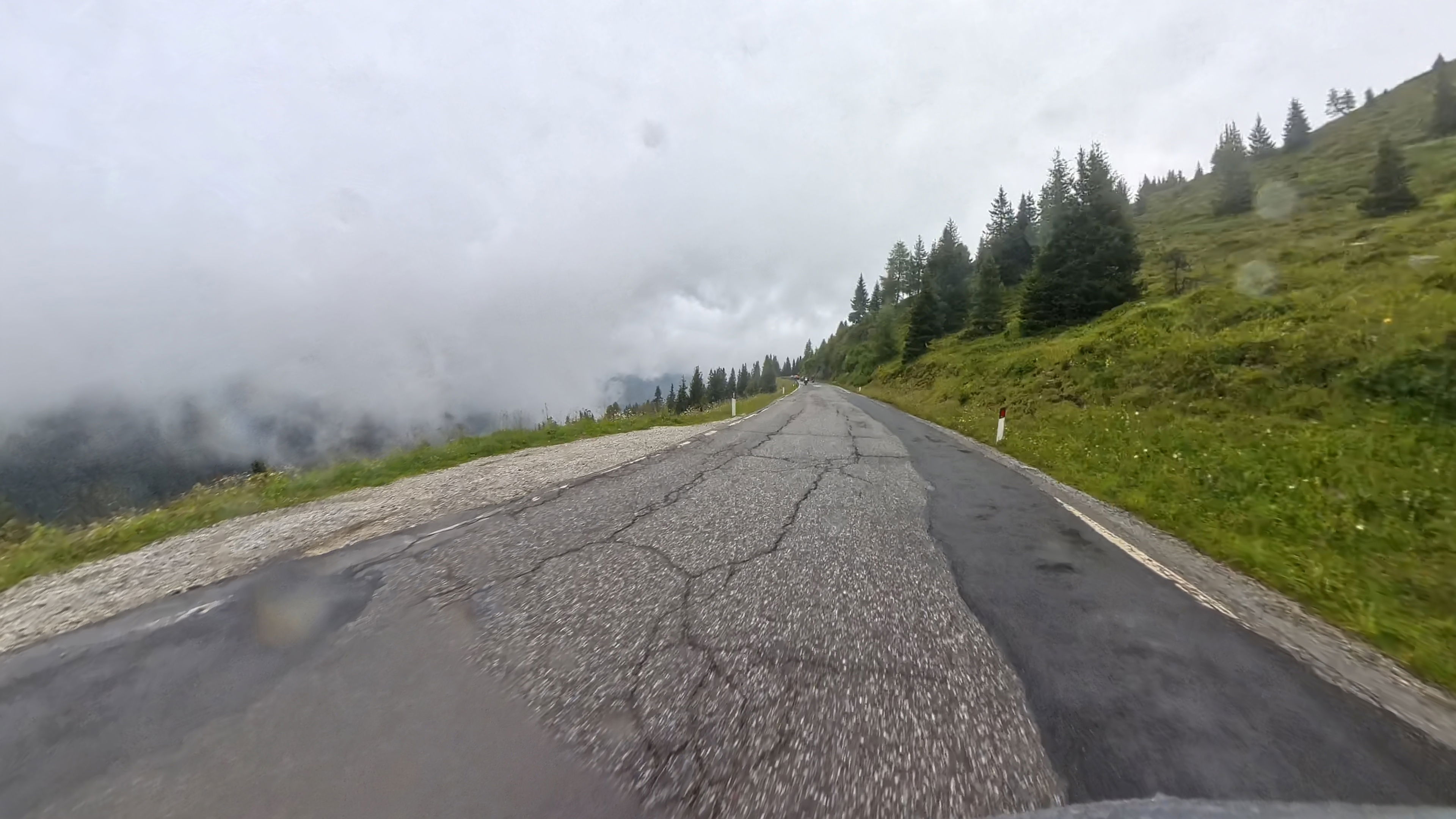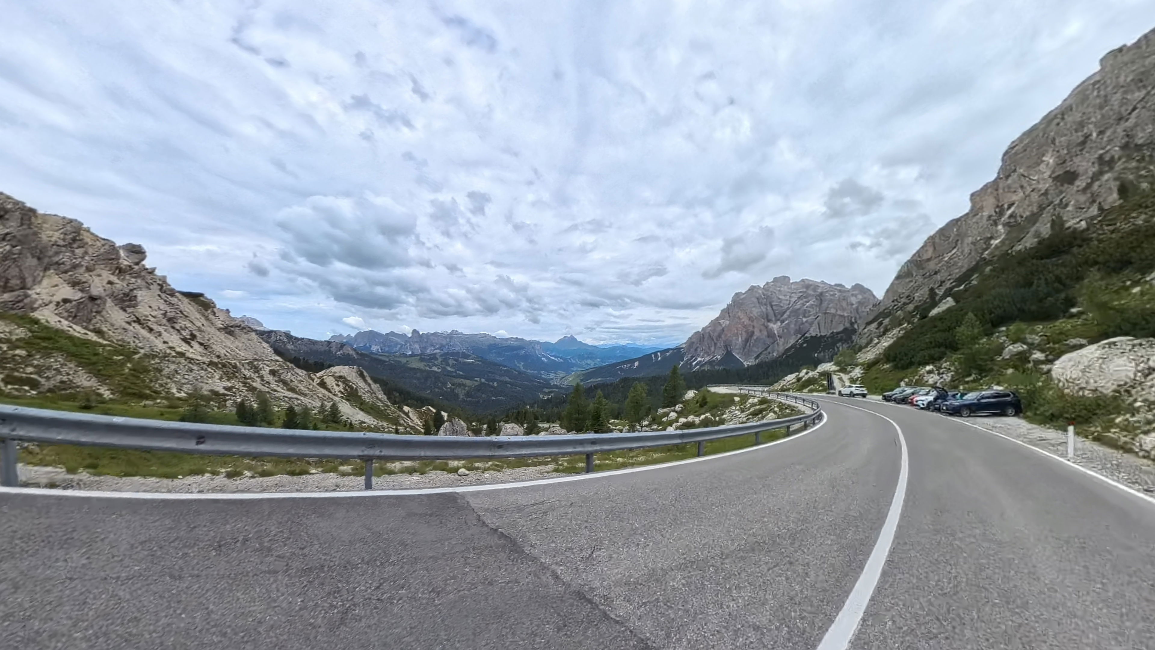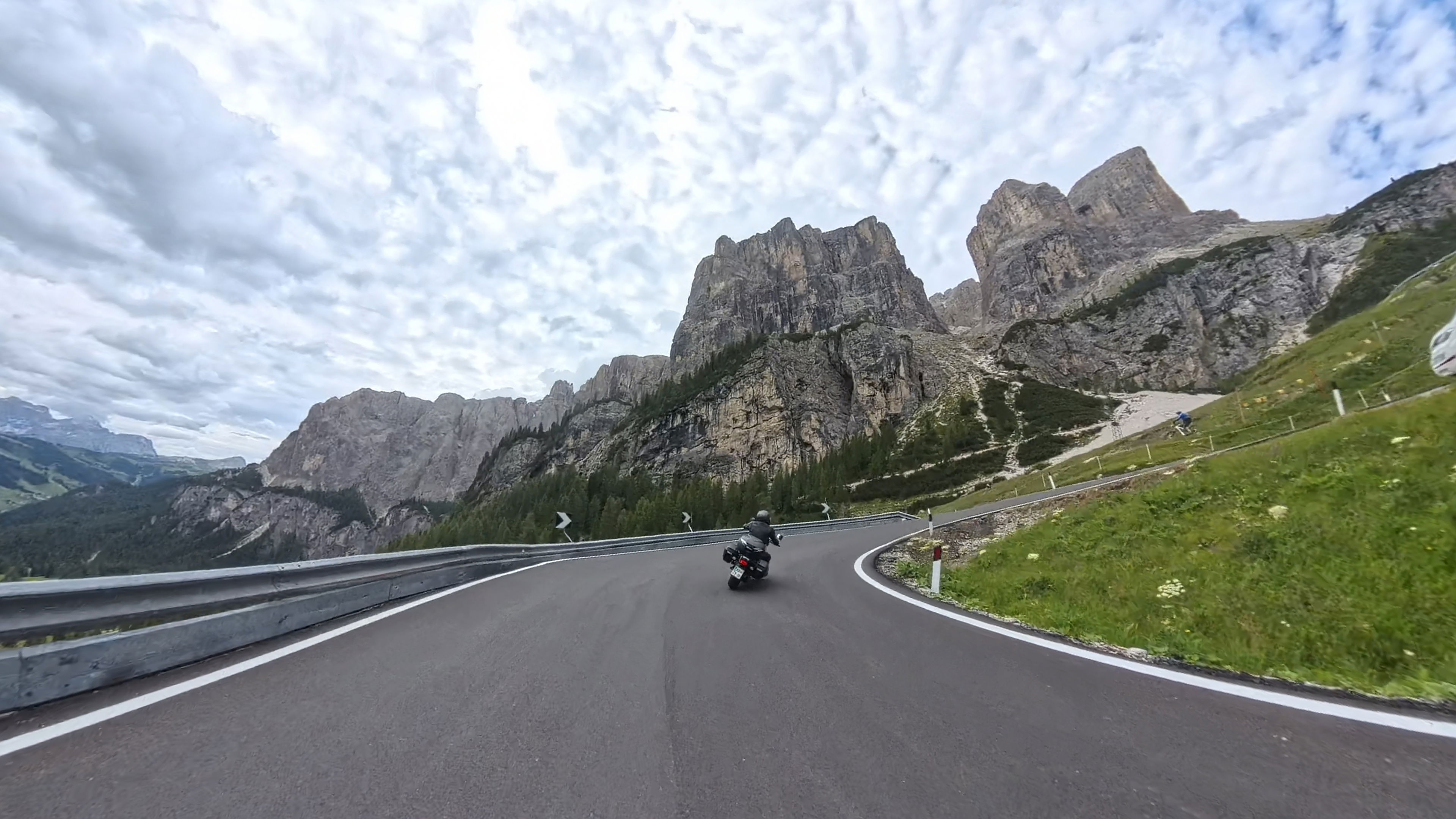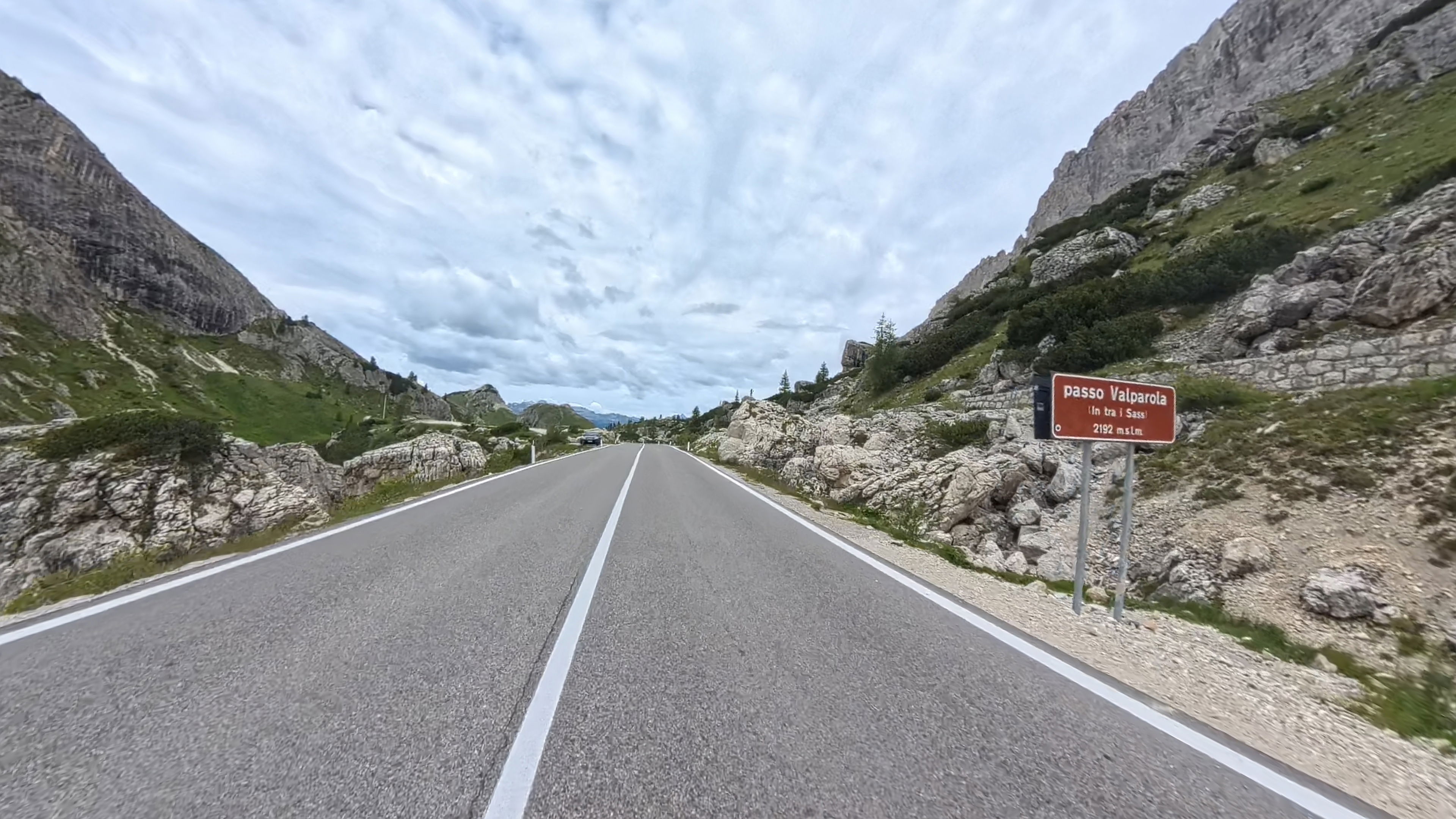 Takoj za dobro jutro nas čaka, zdaj že nekoliko oblačen, vzpon na prelaz Falzarego, nadaljujemo čez naslednji, manjši prelaz Valparola in zatem prevozimo še preostanek Sellaronde.