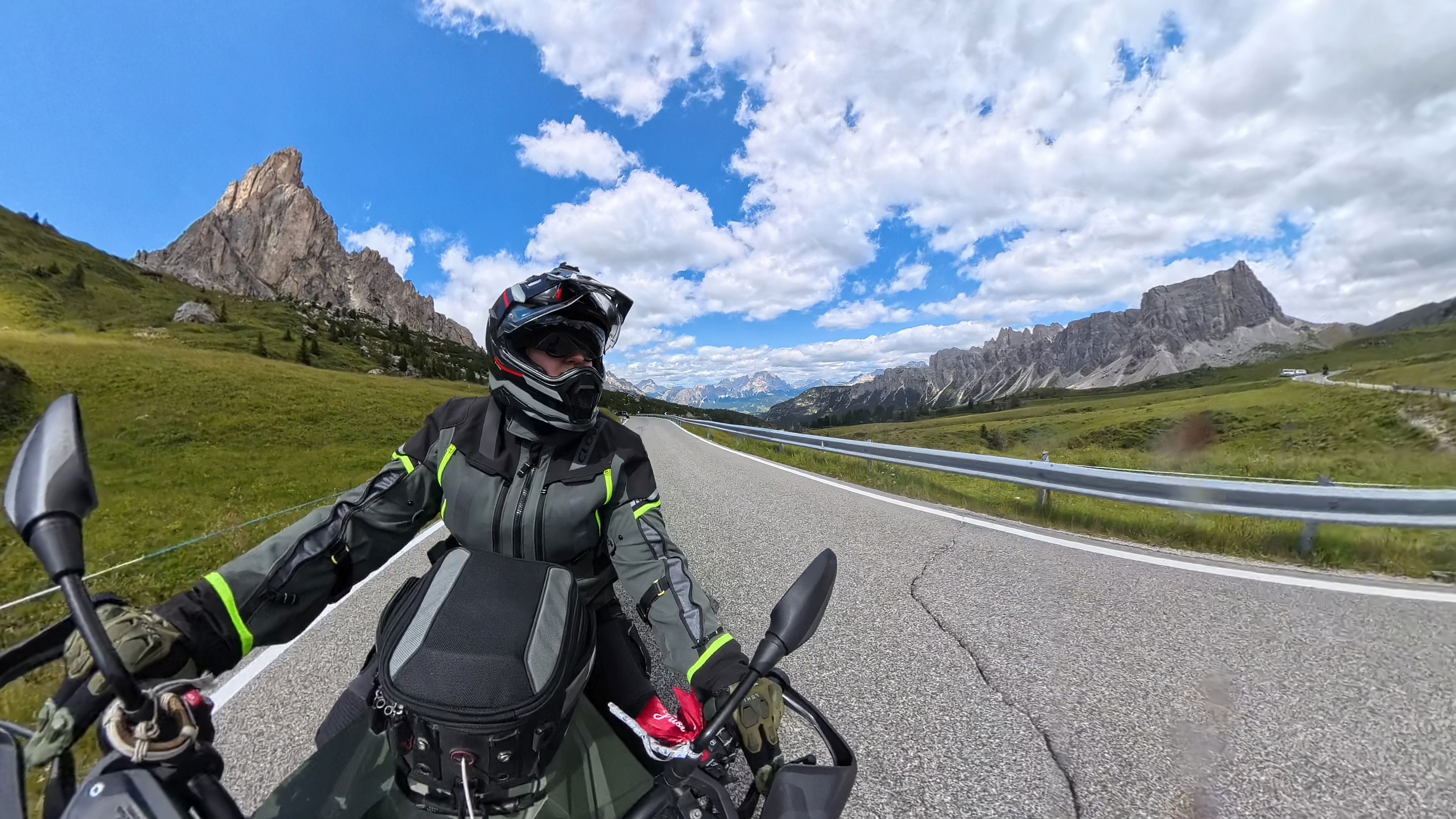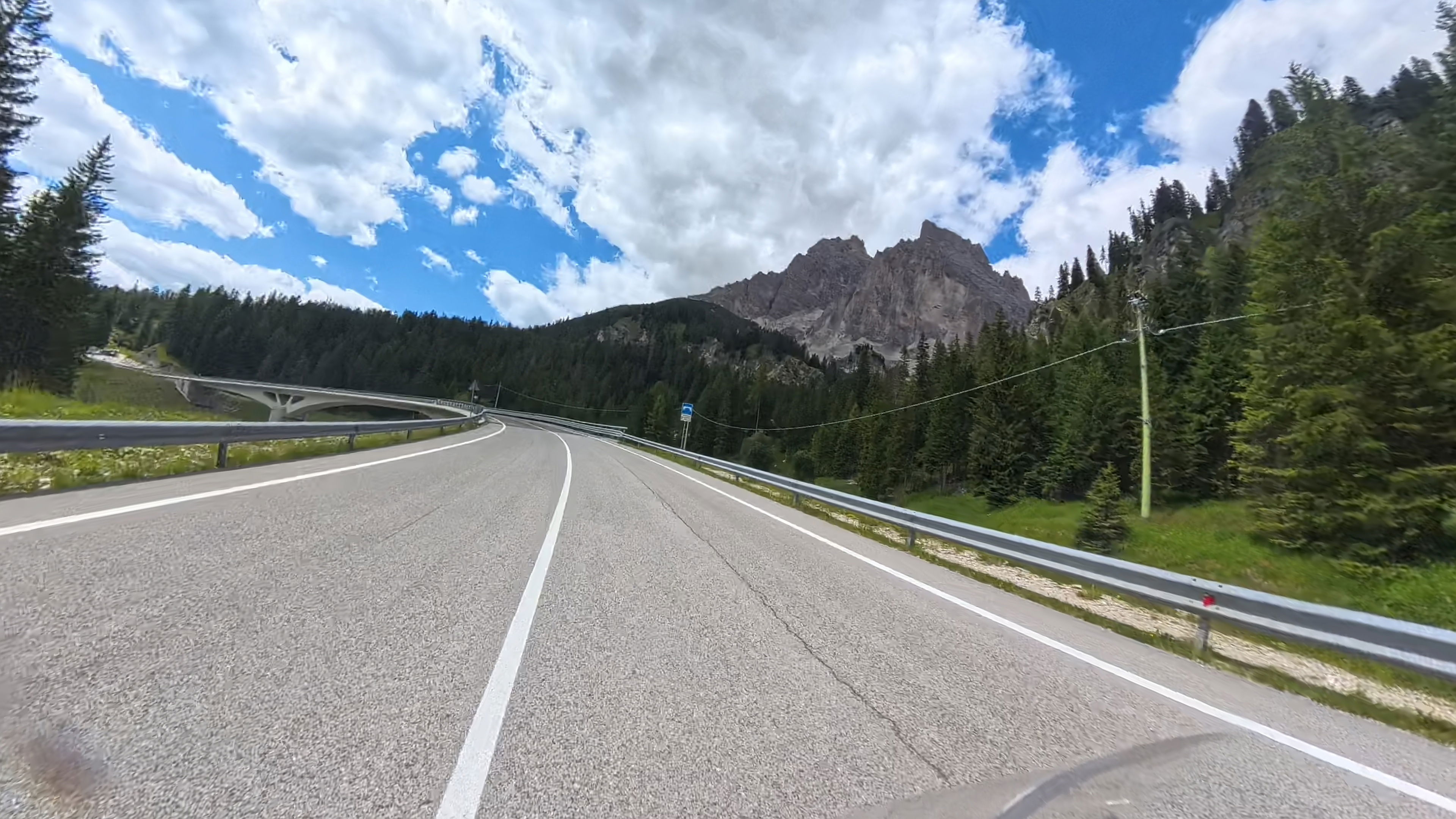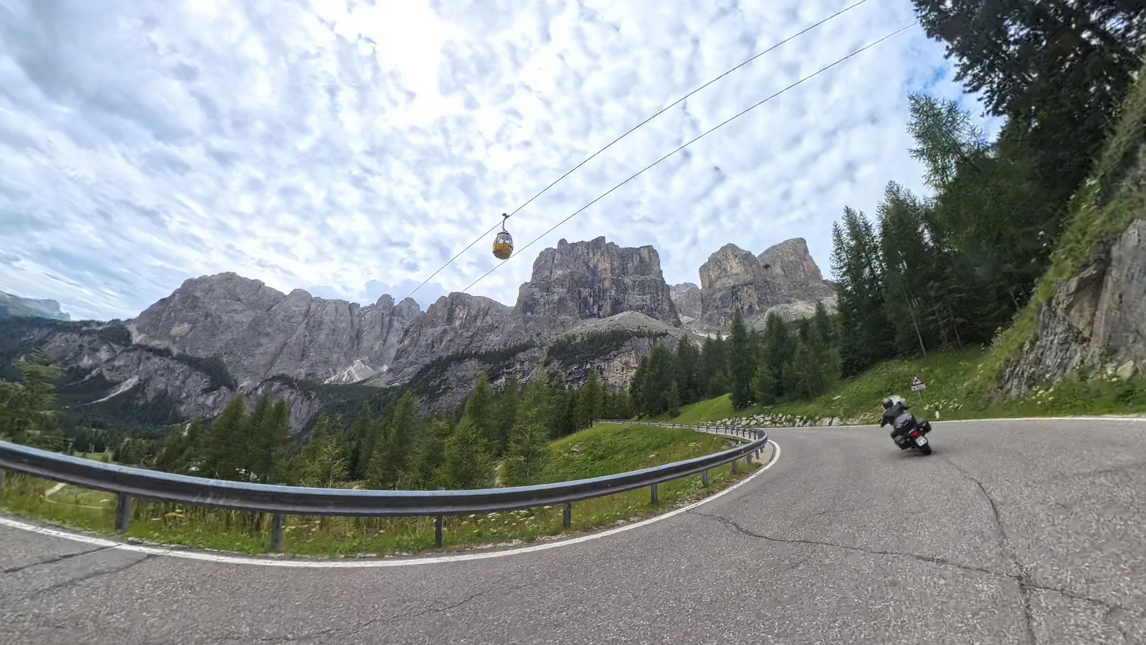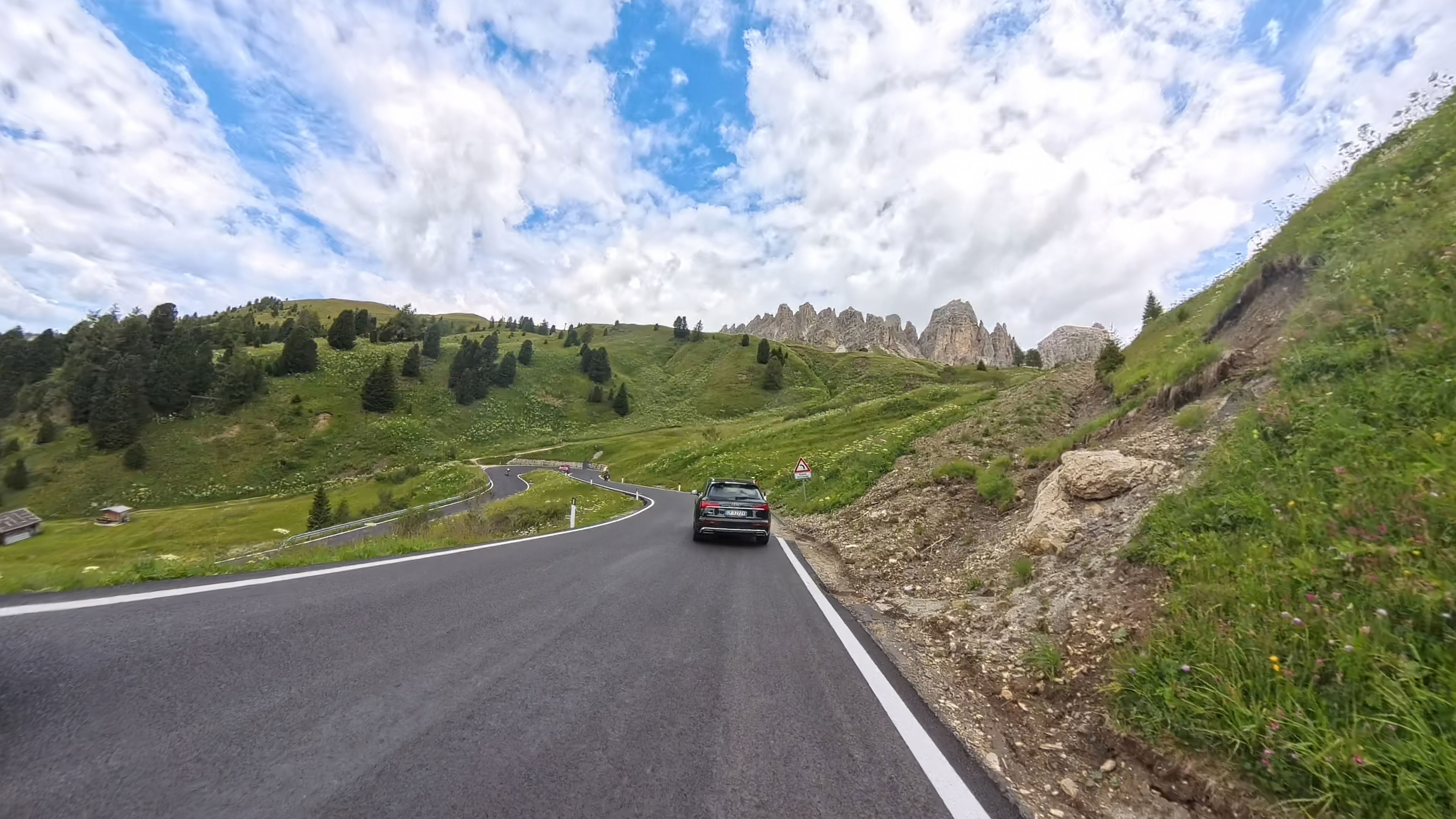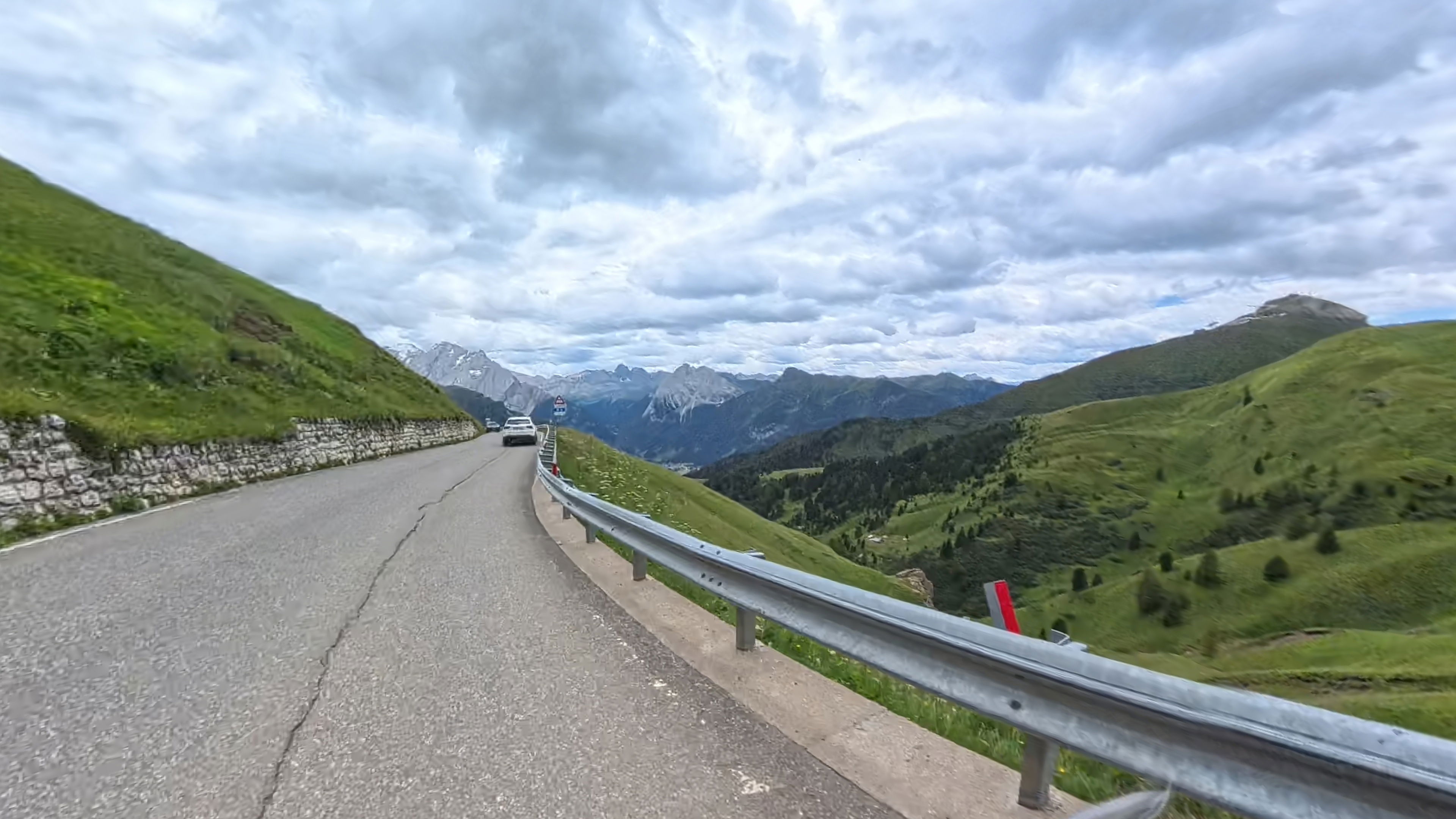 Takoj za dobro jutro nas čaka, zdaj že nekoliko oblačen, vzpon na prelaz Falzarego, nadaljujemo čez naslednji, manjši prelaz Valparola in zatem prevozimo še preostanek Sellaronde.