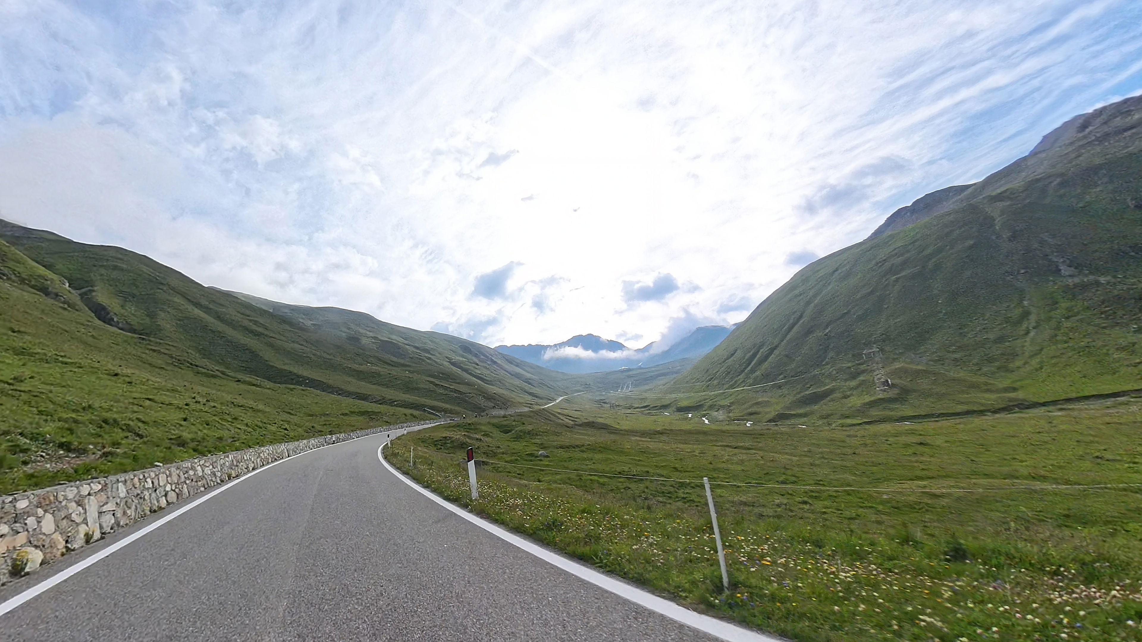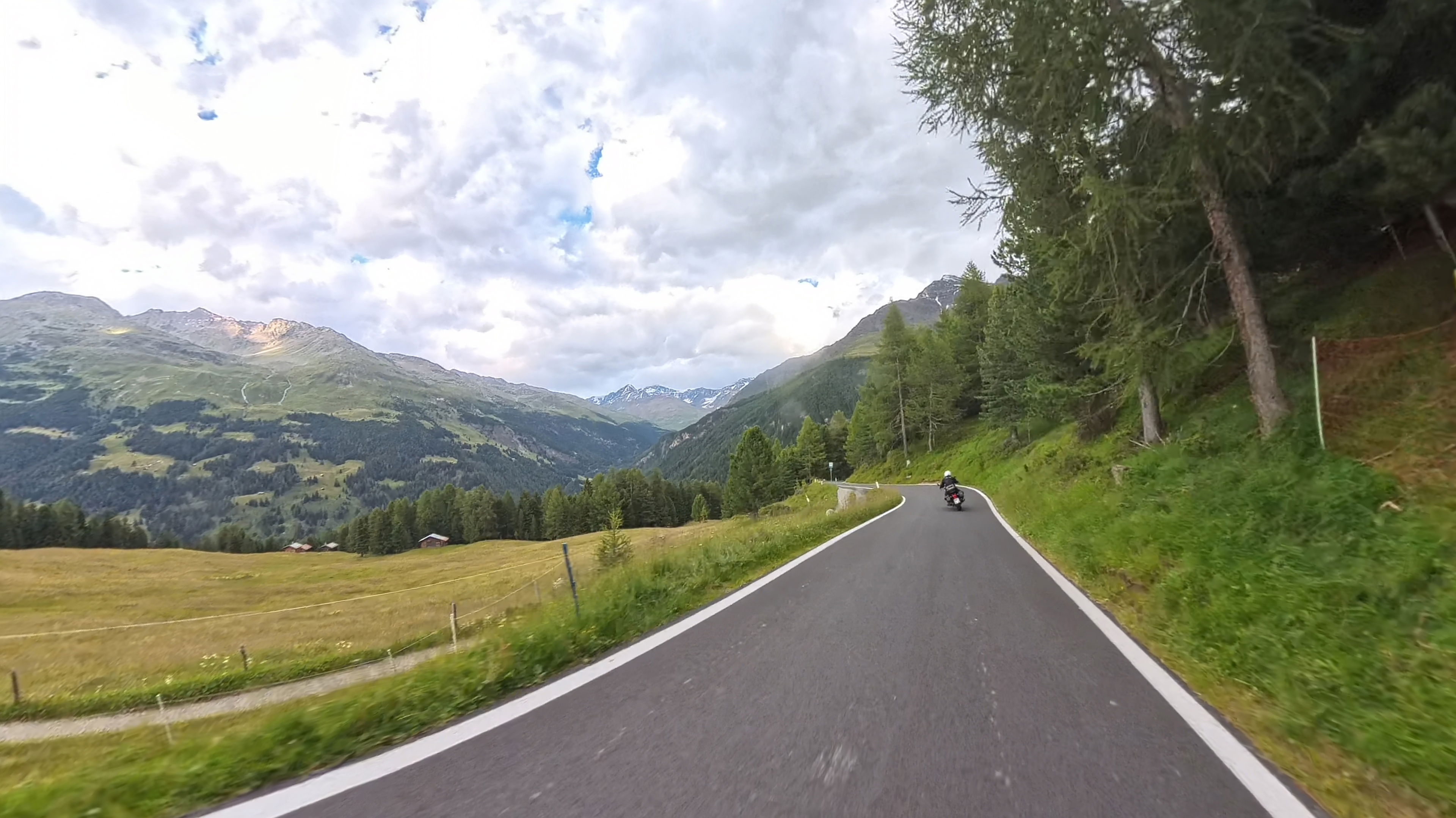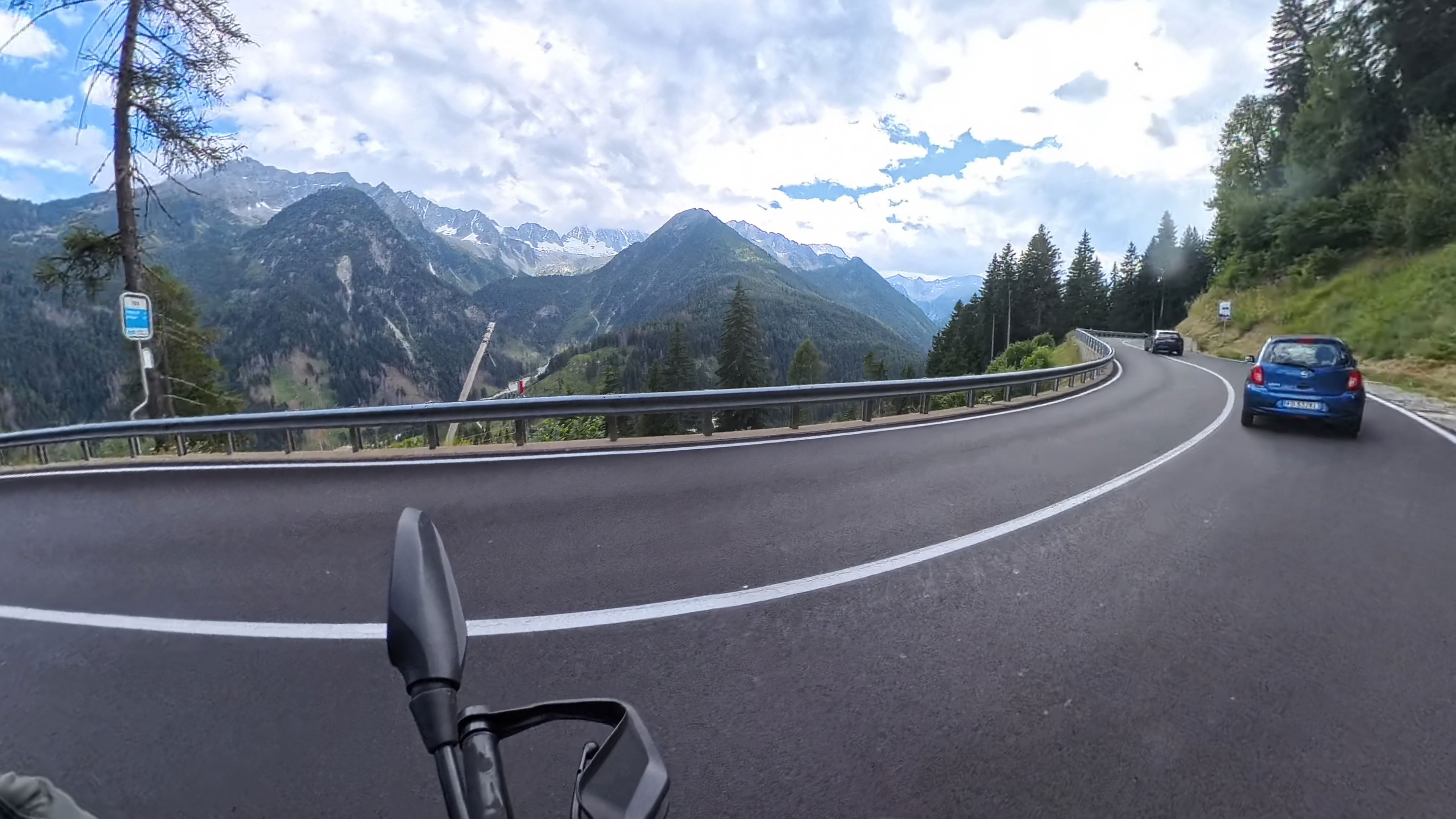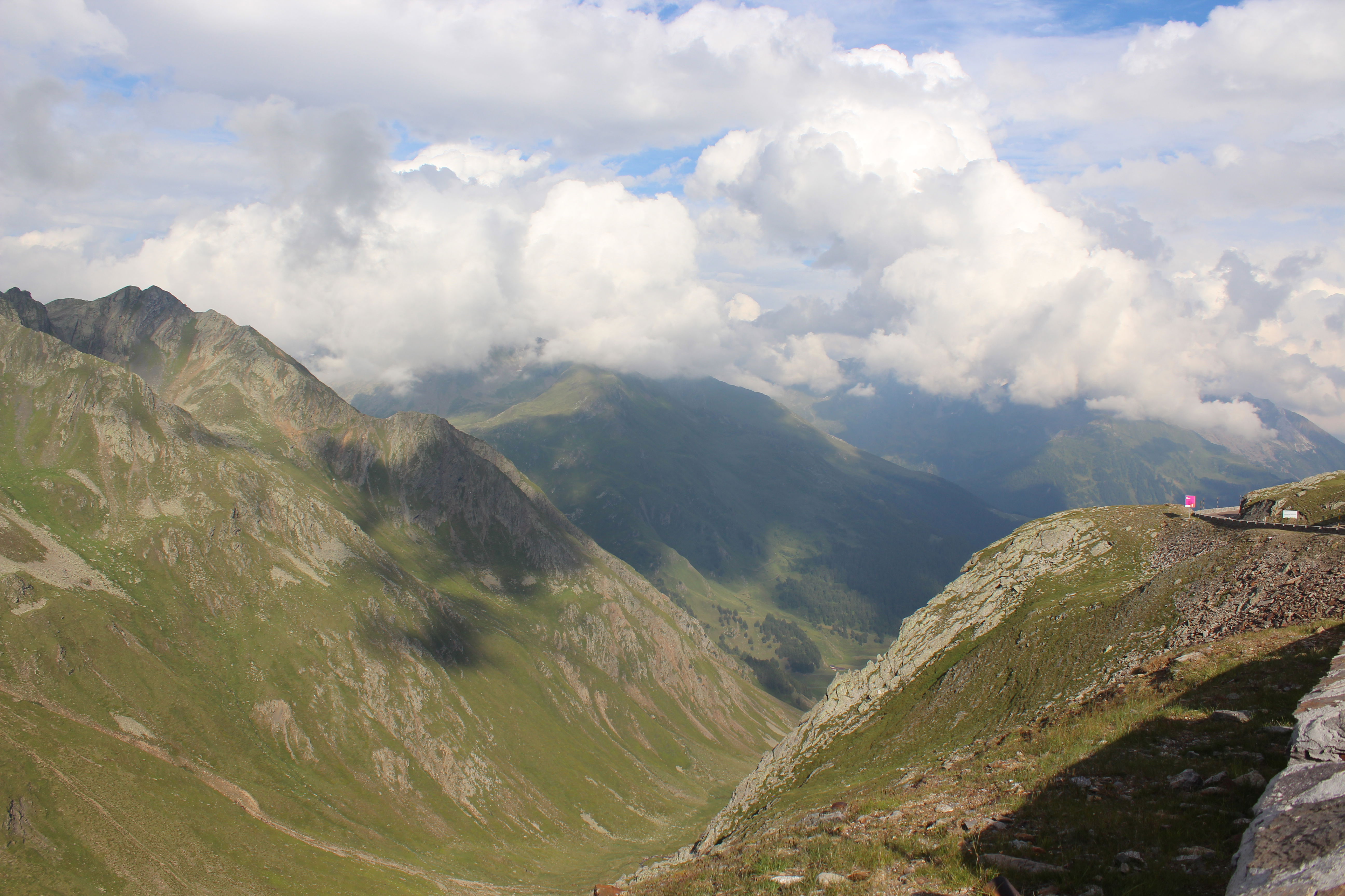 Spust v dolino Passiria je prav tako čudovit. Na vrhu je cesta še nekoliko poškodovana, a nas to ne gane kaj dosti, lahko vsaj uživamo v razgledih.