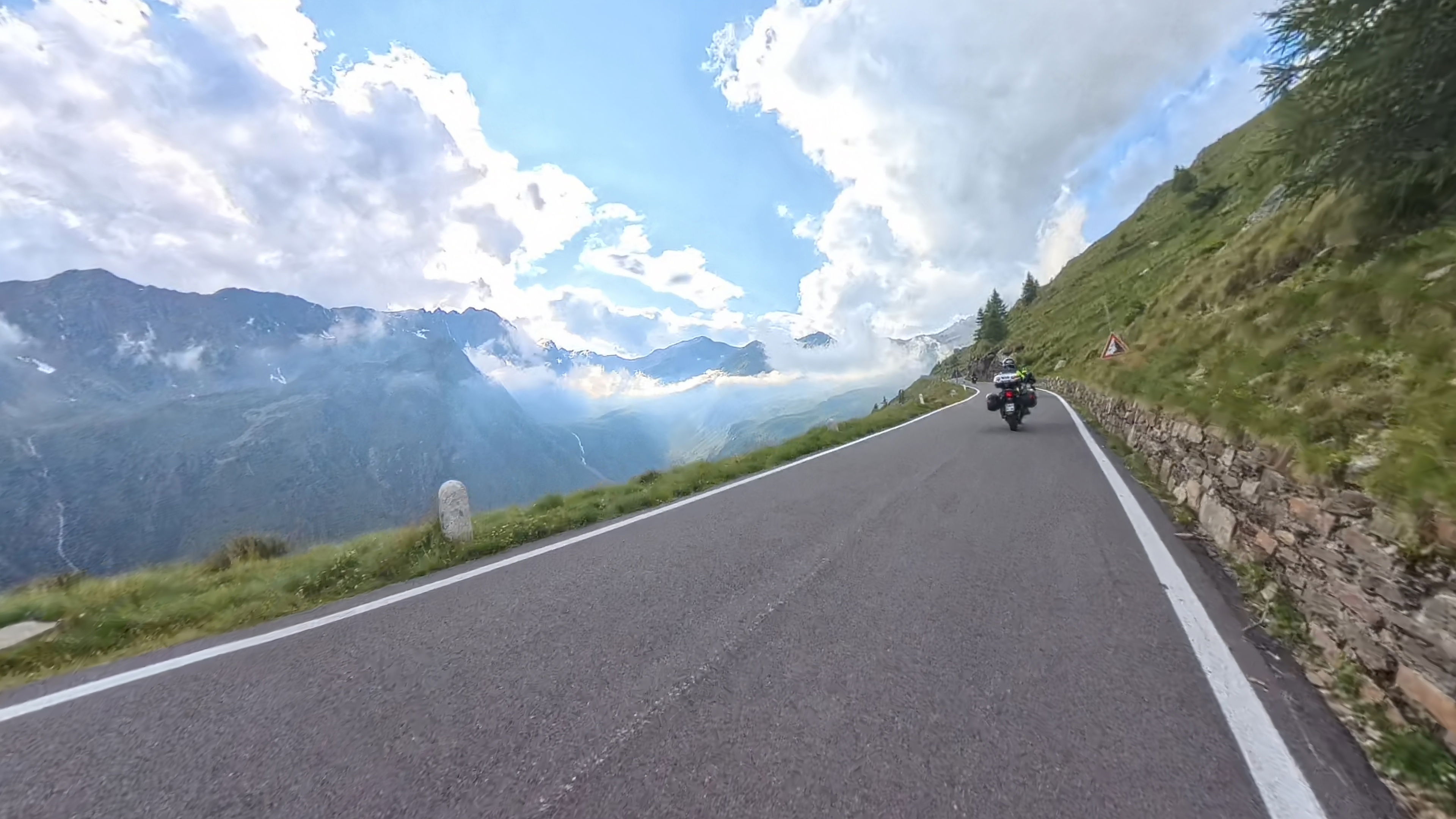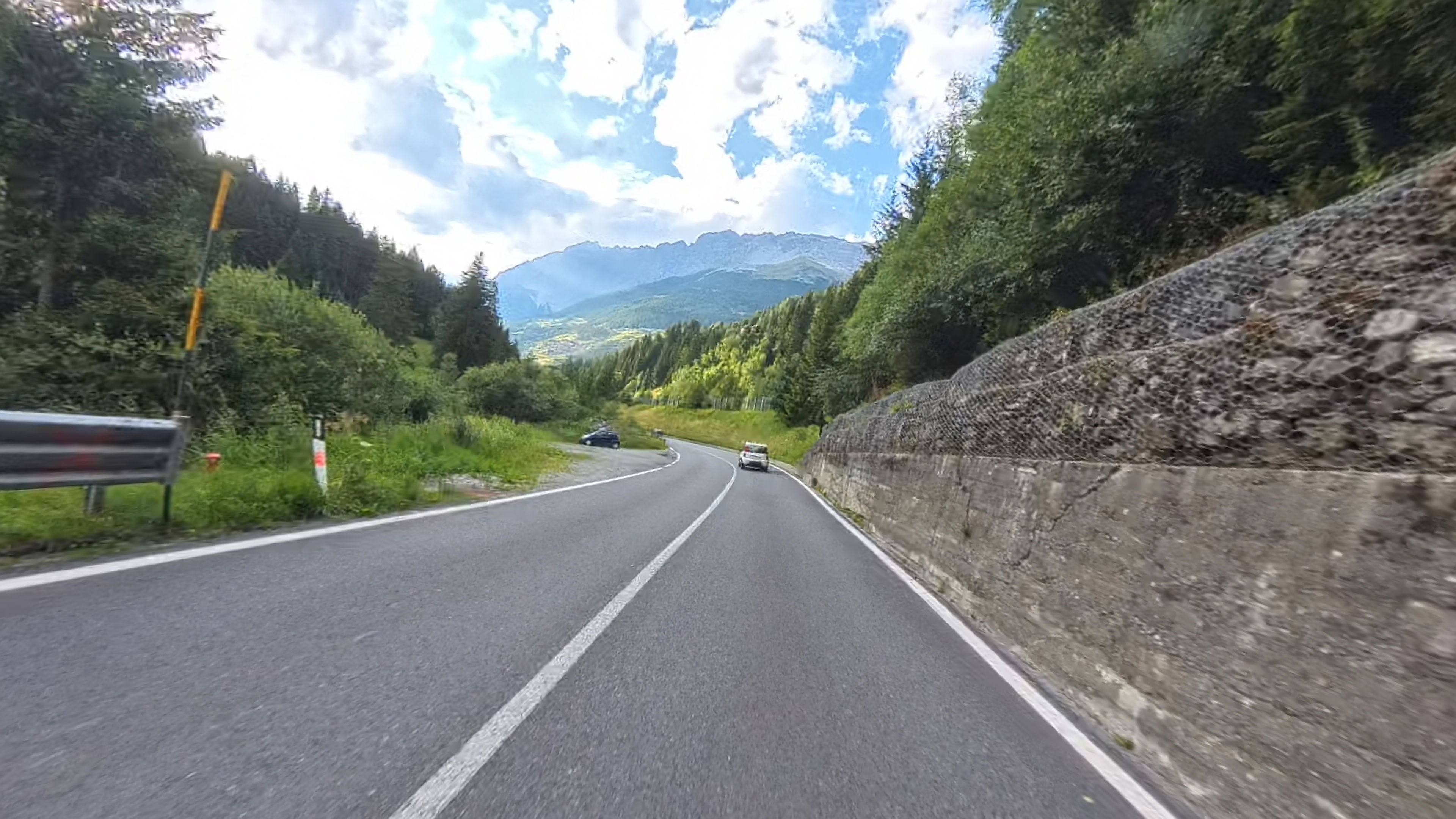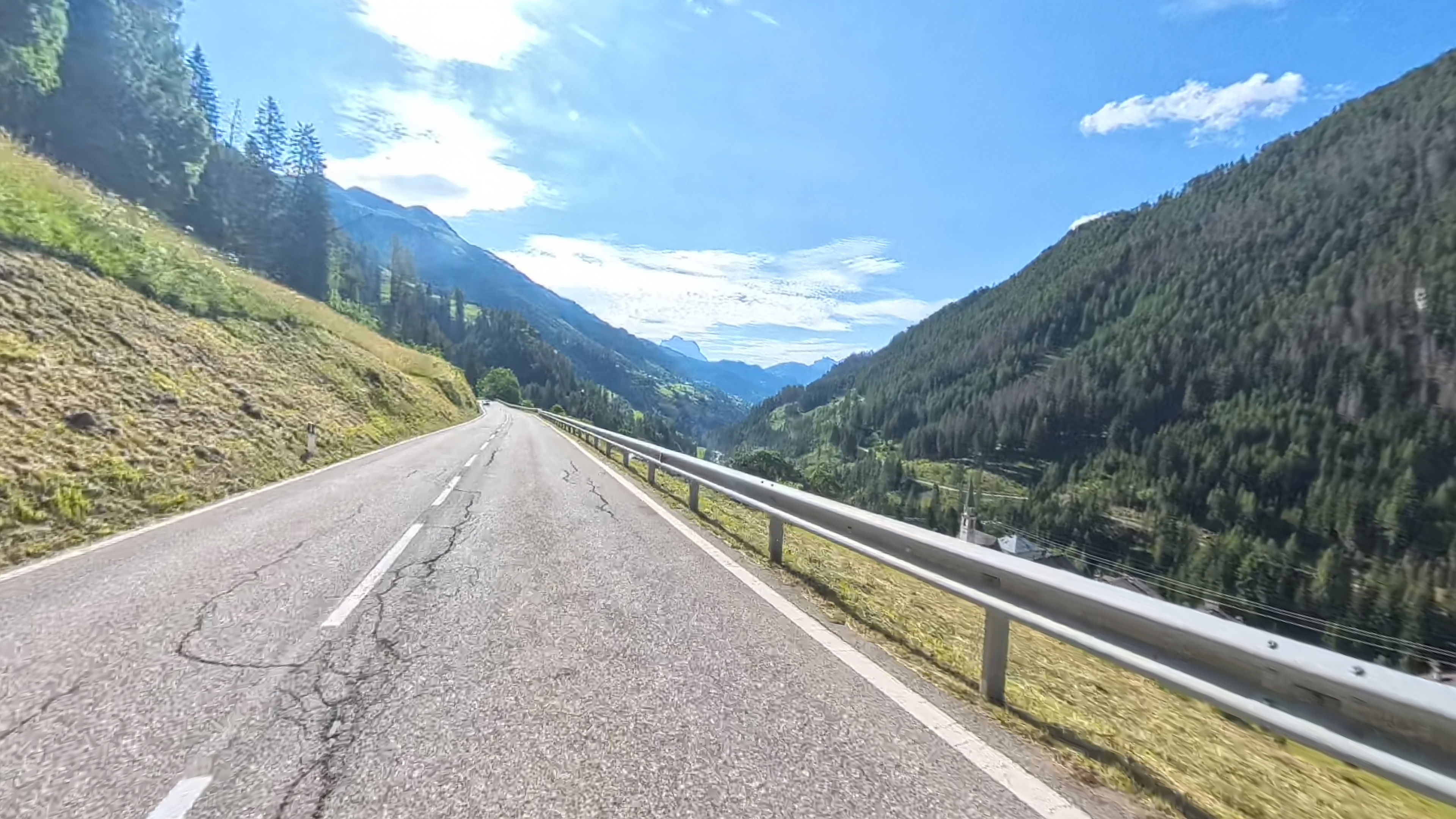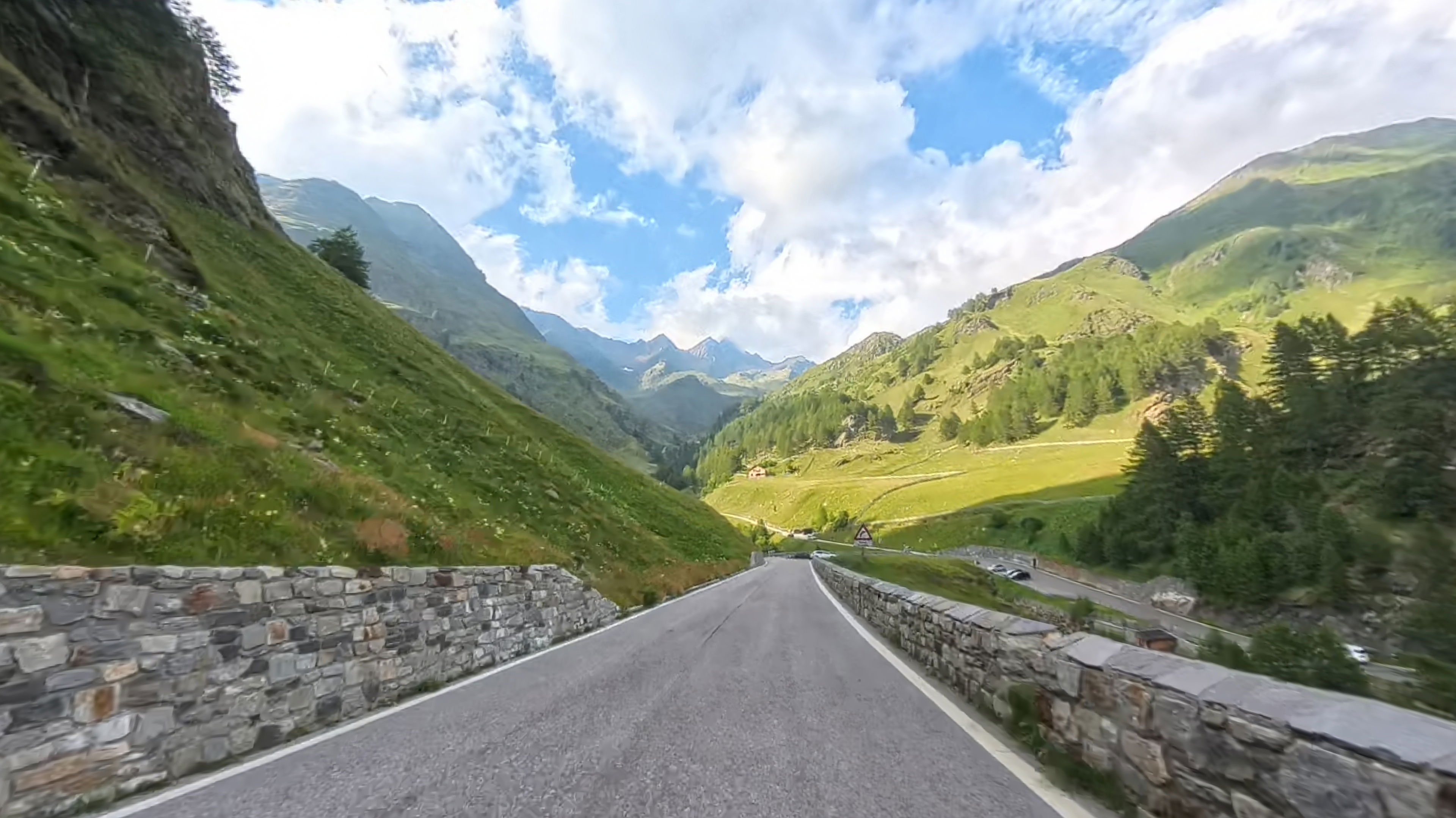 Spust v dolino Passiria je prav tako čudovit. Na vrhu je cesta še nekoliko poškodovana, a nas to ne gane kaj dosti, lahko vsaj uživamo v razgledih.