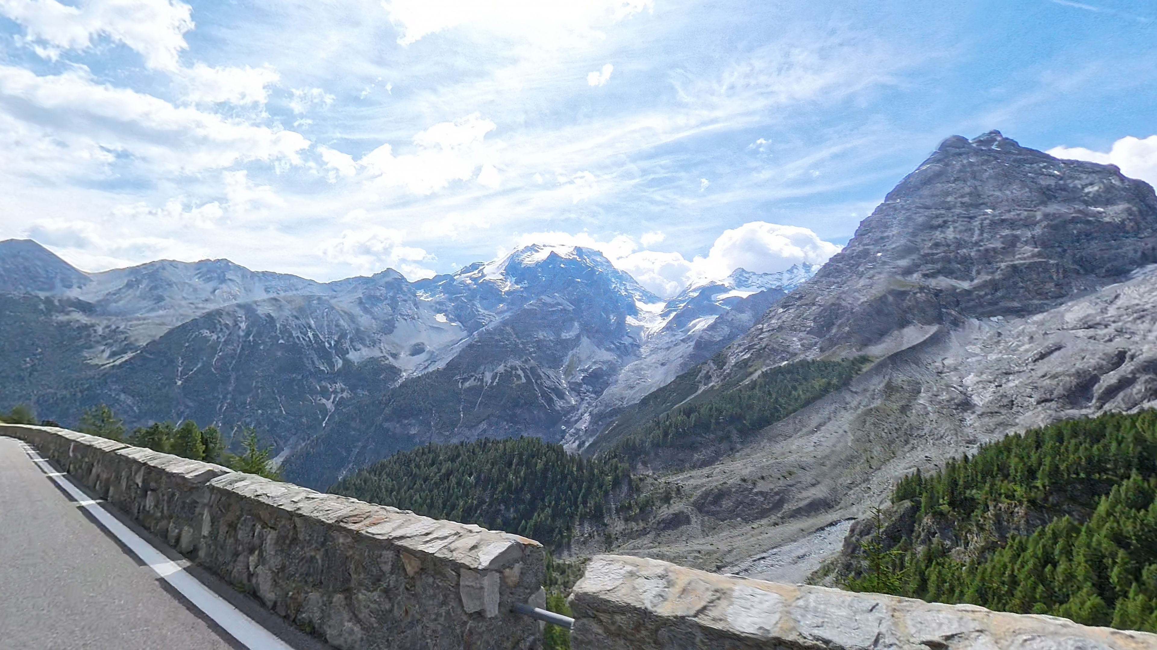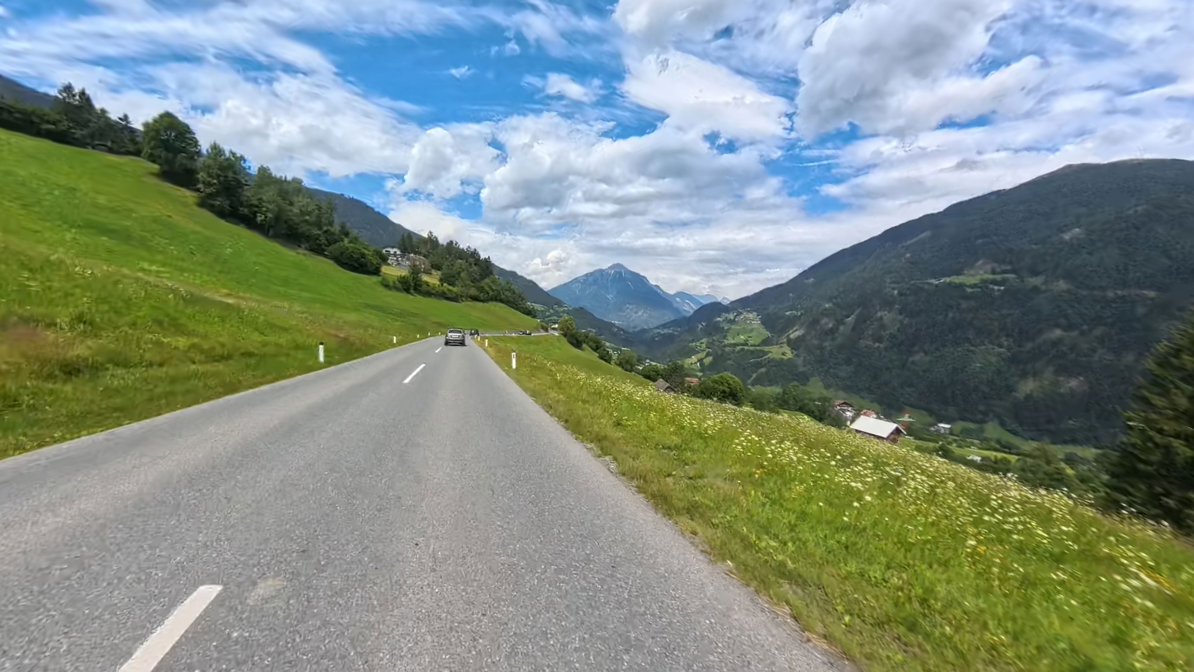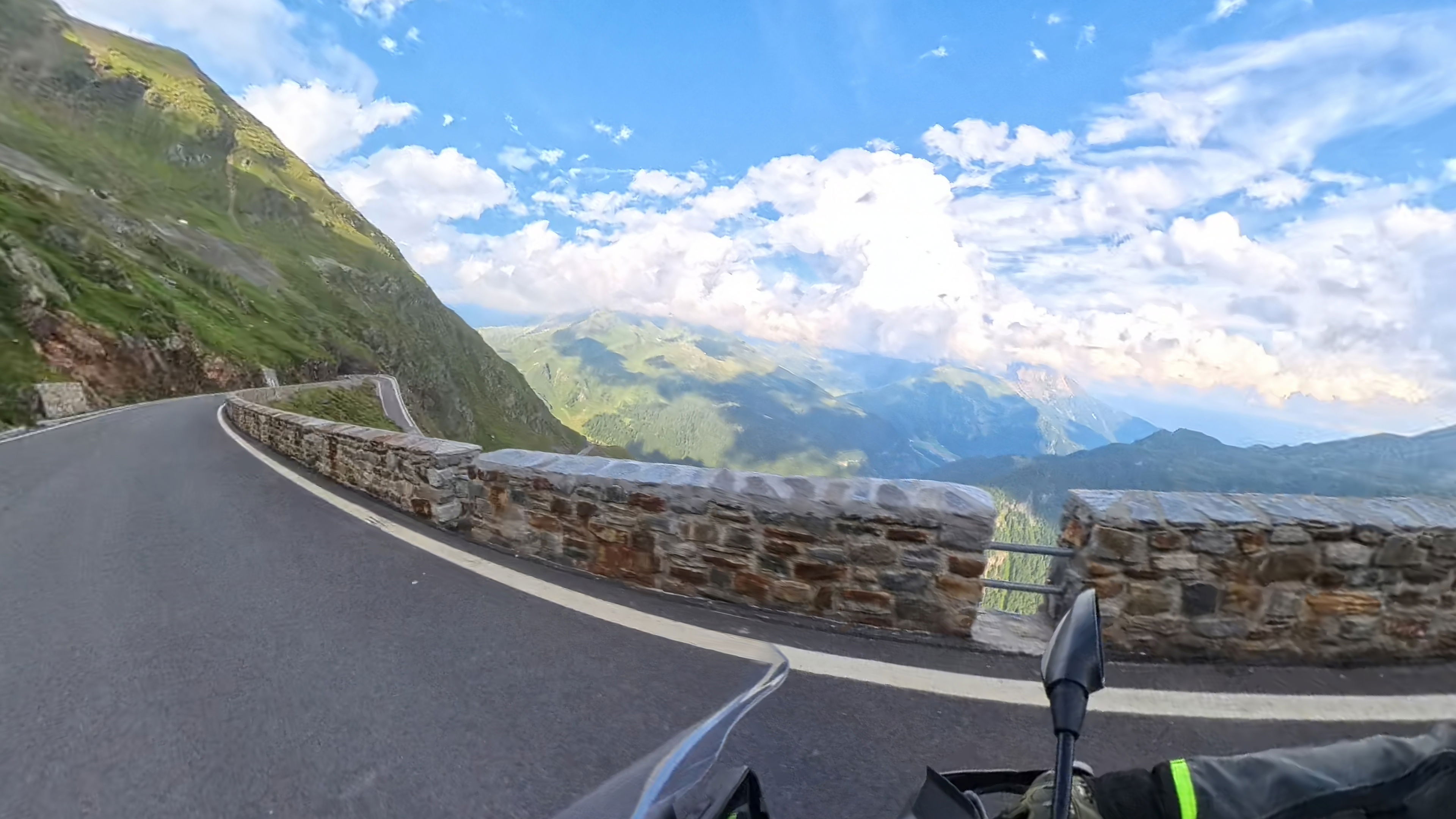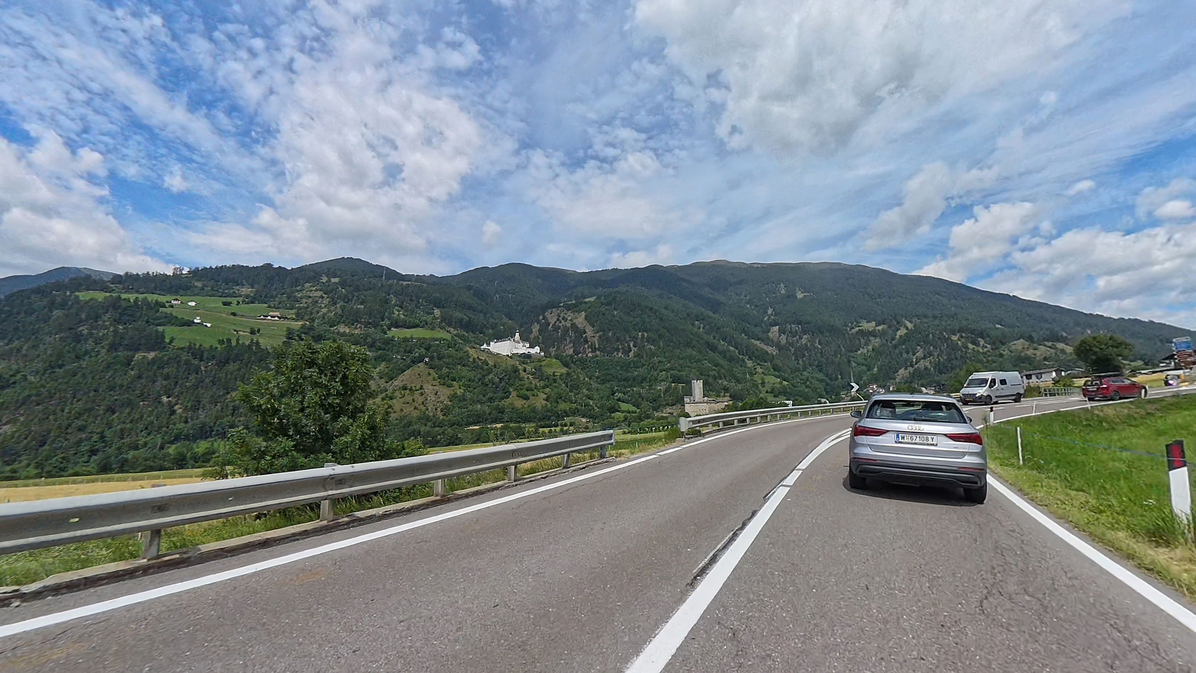 Spust v dolino Passiria je prav tako čudovit. Na vrhu je cesta še nekoliko poškodovana, a nas to ne gane kaj dosti, lahko vsaj uživamo v razgledih.