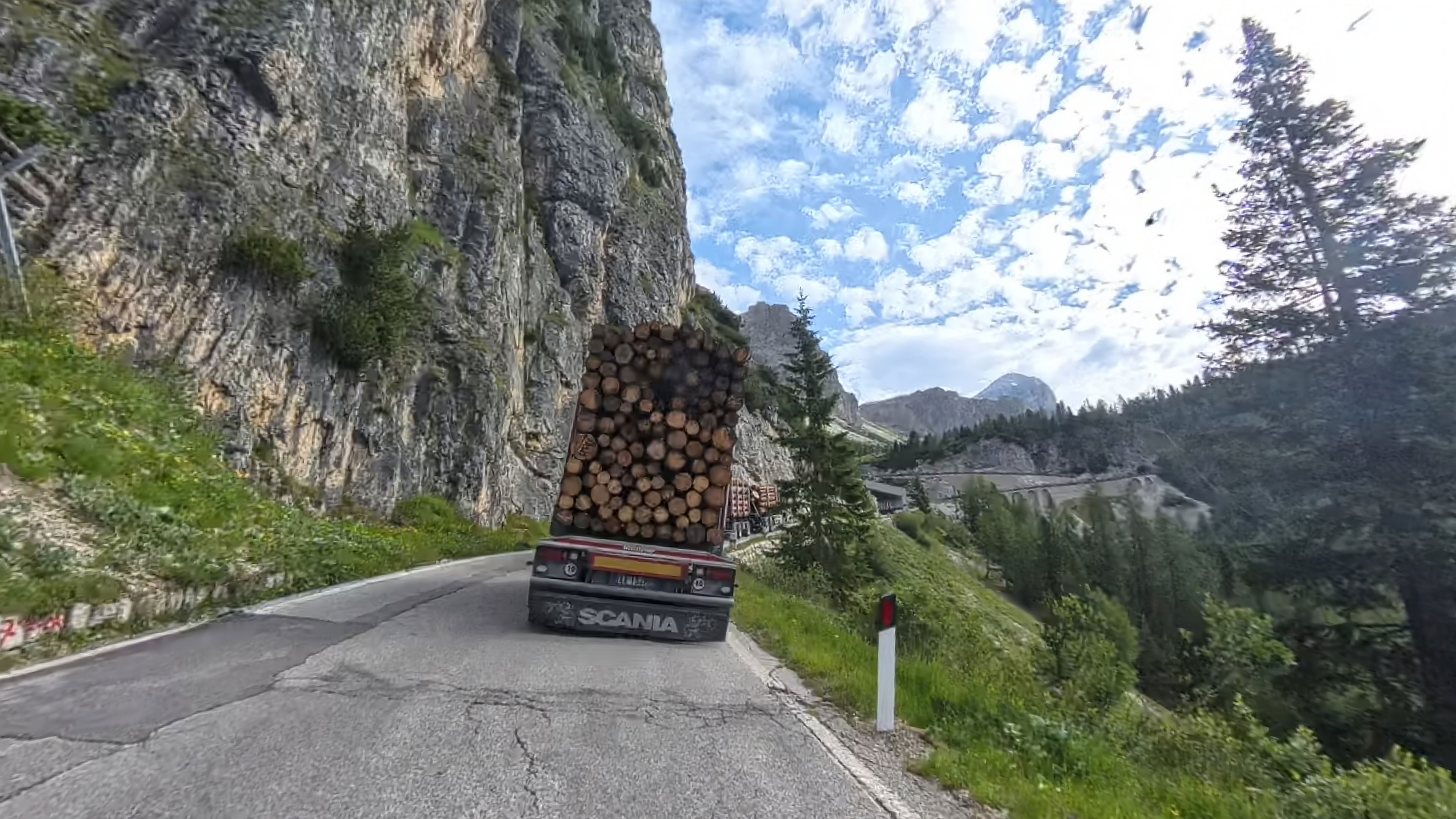 Tadva kamiona si želimo pehiteti še preden pridemo do serpentin