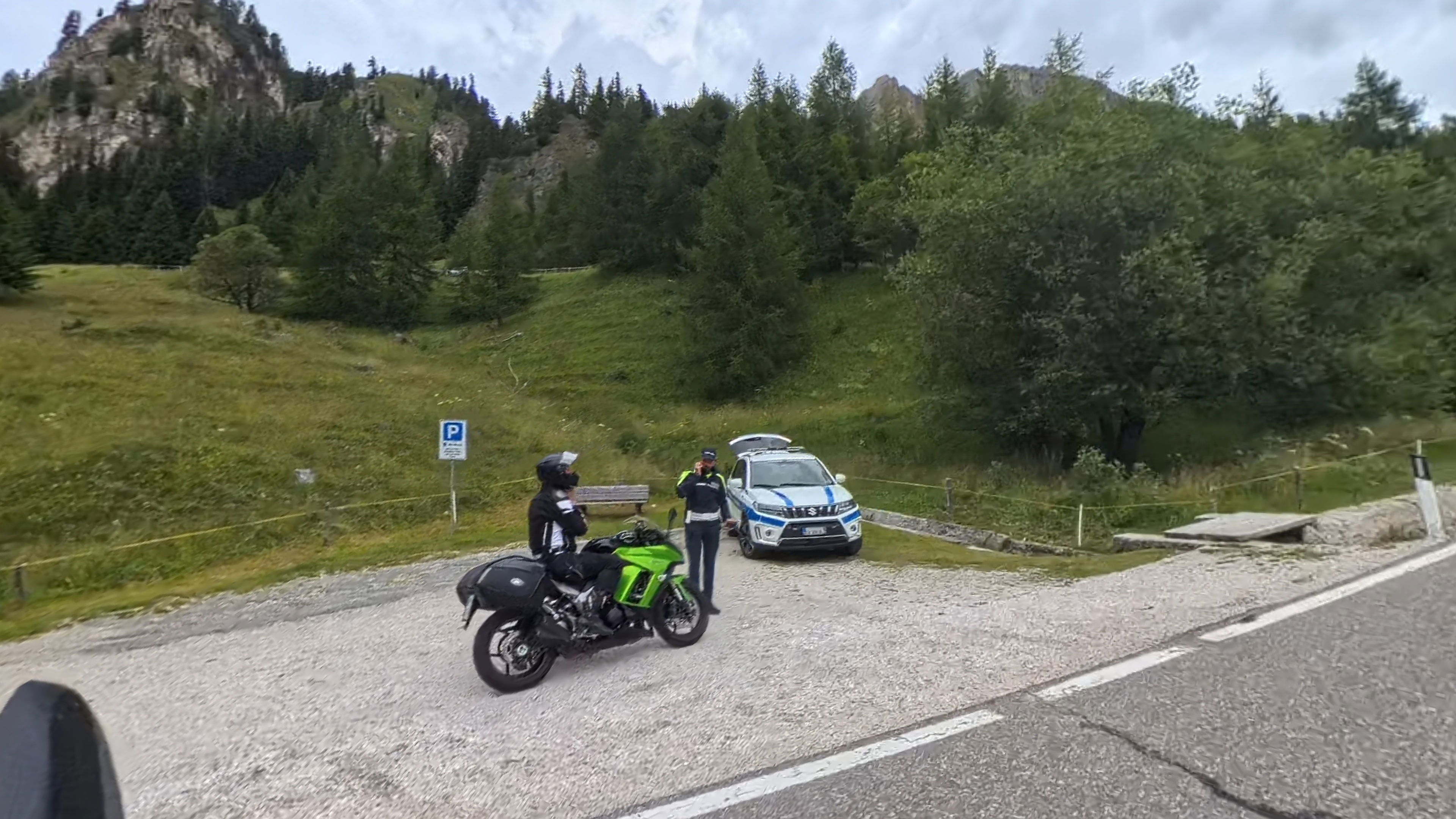 Le mi, cesta……… in spet policijska kontrola. In koga spet ustavijo? Kakopak, spet istega, kakor na prelazu Gardena. Tokrat naleti le na kontrolo prometa.