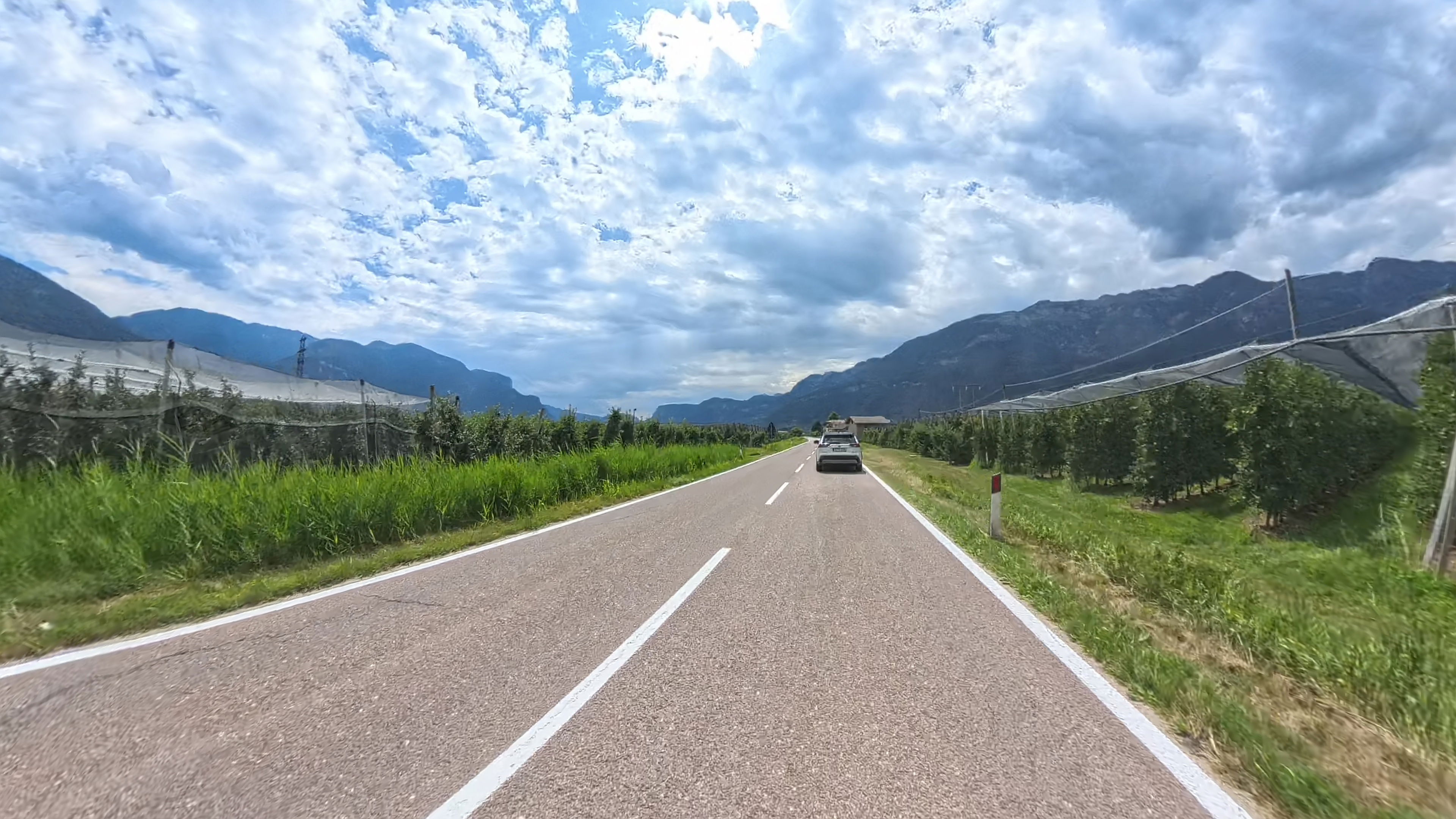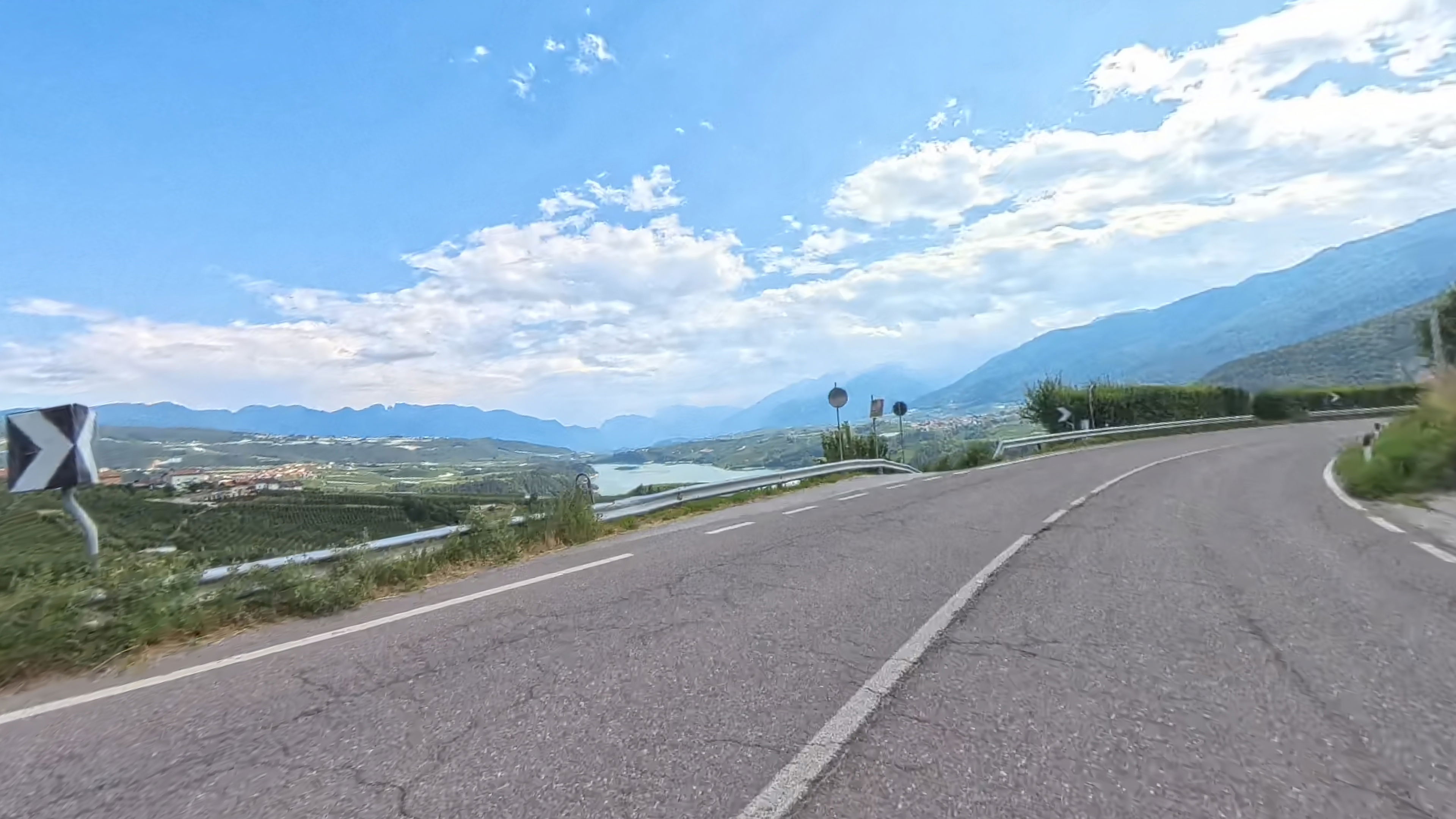 Spustimo se v Canazei in se s tem poslovimo od osrčja Dolomitov. Skozi dolino Fasse nadaljujemo do Moene in naprej do prelaza, ki to pač ni, Passo di San Lugano. Na drugi strani se ustavimo na serpentini, s katere imamo čudovit razgled na dolino Adiže in njene sadovnjake in vinograde.