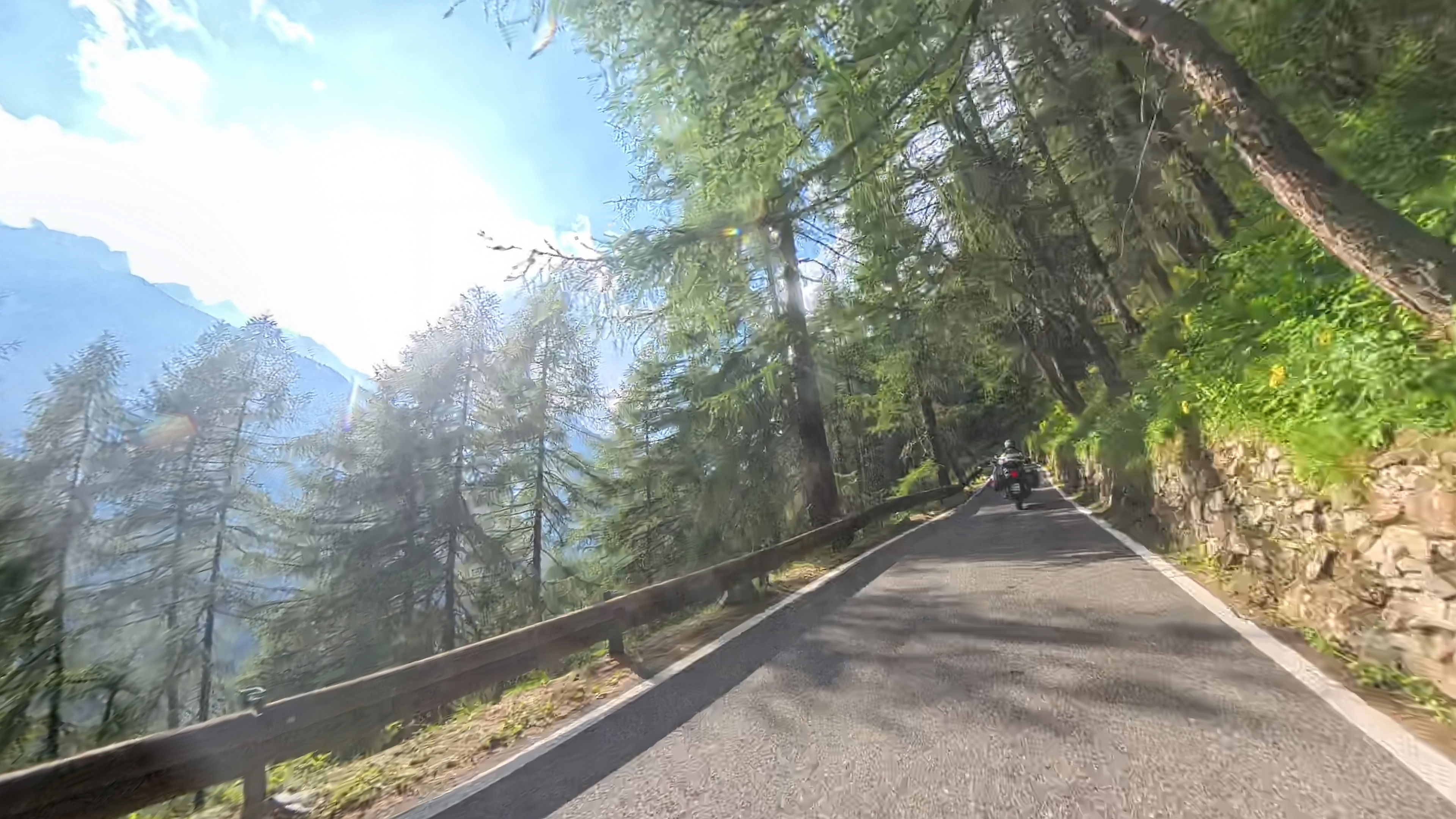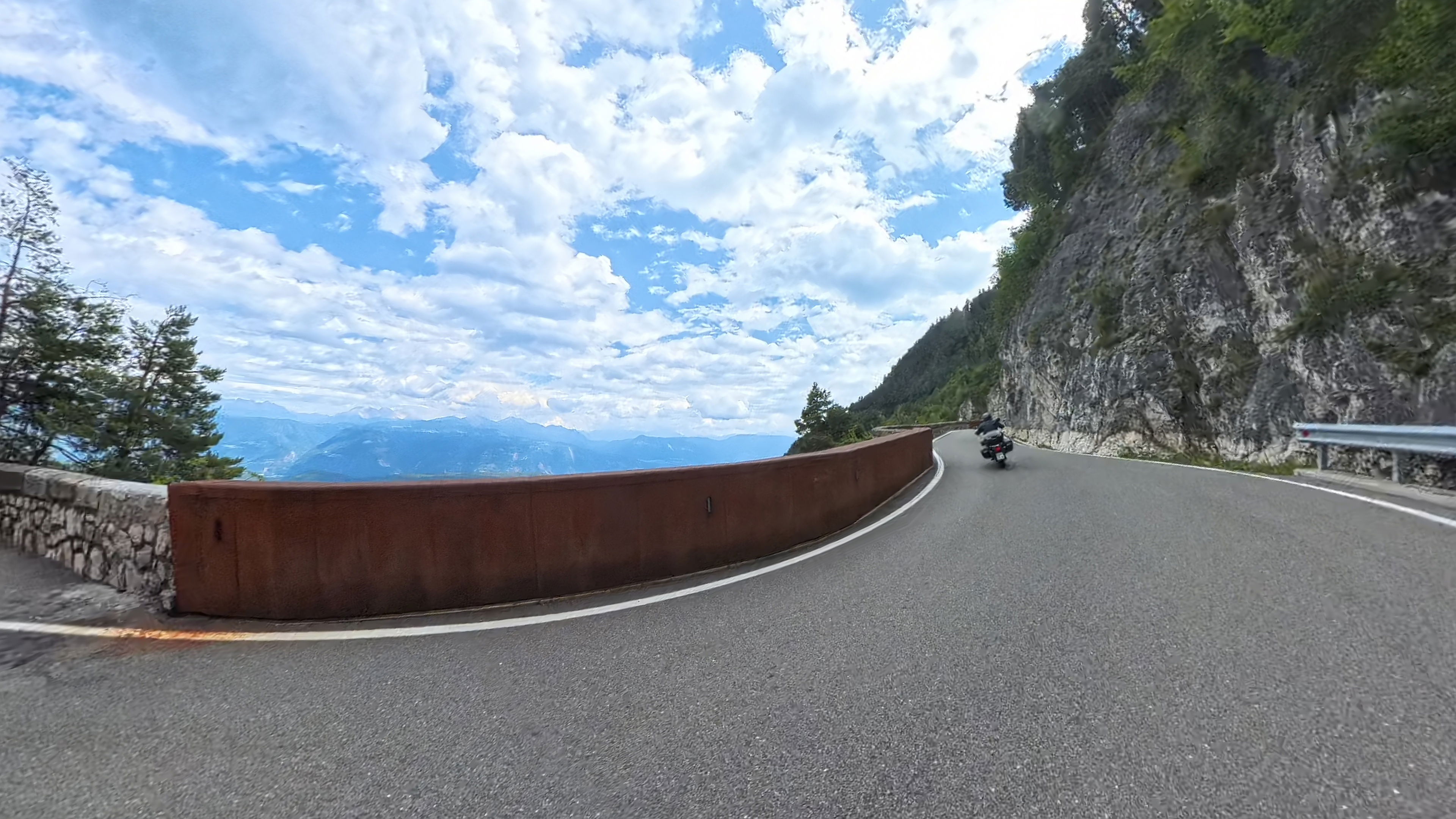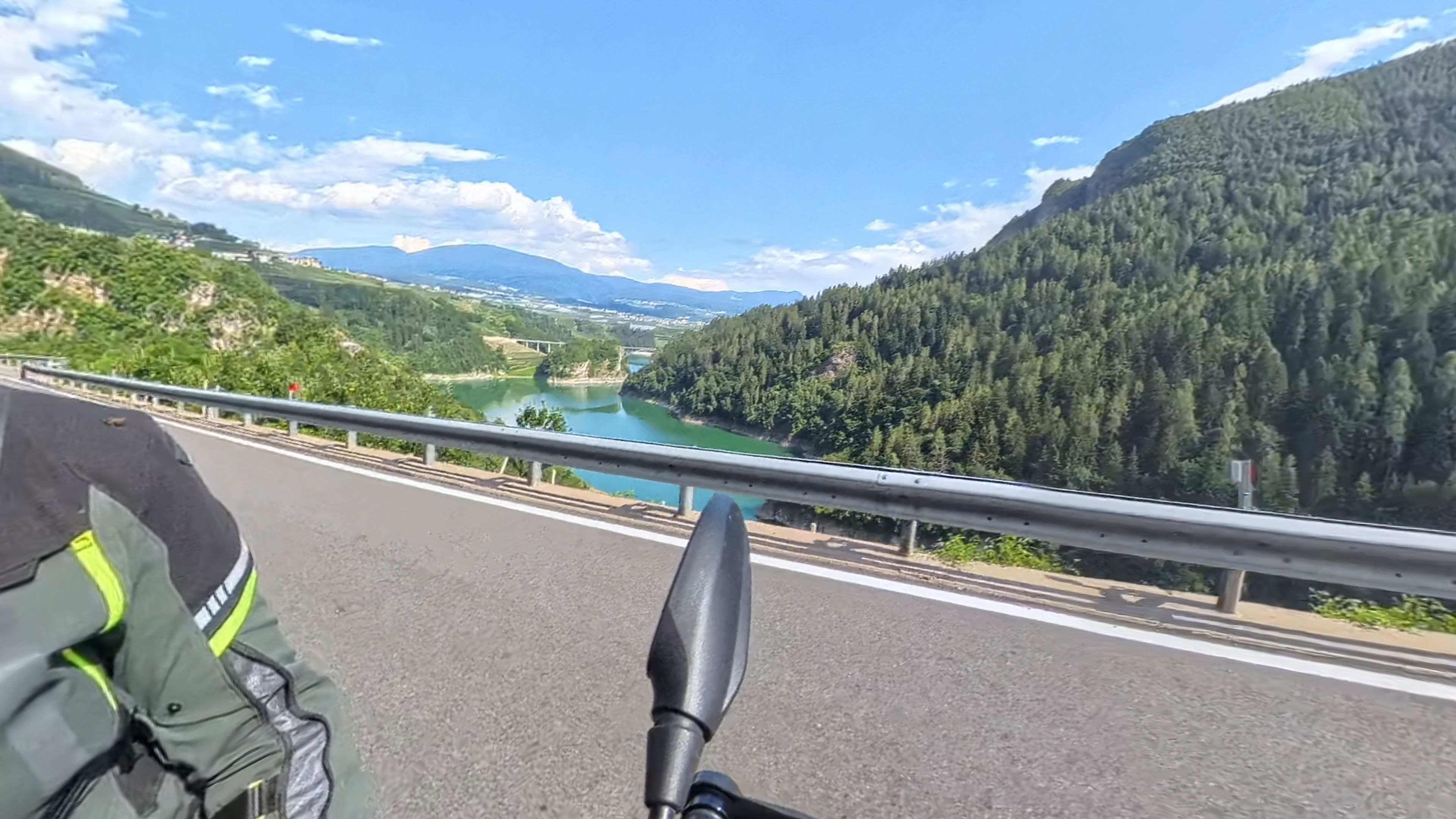 Na drugi strani doline se nato povzpnemo na prelaz Mendola. No, kdor želi, si tukaj lahko da duška. Prijatelj mi na vrhu reče: “Vau, kakšen asfalt, brez lukenj, brez zalivk, kot bi nekdo ‘tepih’ položil”. Razgledov tu sicer ni, ker se večinski del ceste vije skozi gozd, ampak je pa vožnja pravo doživetje zaradi lepo speljanih zavojev in kvalitetnega asfalta.