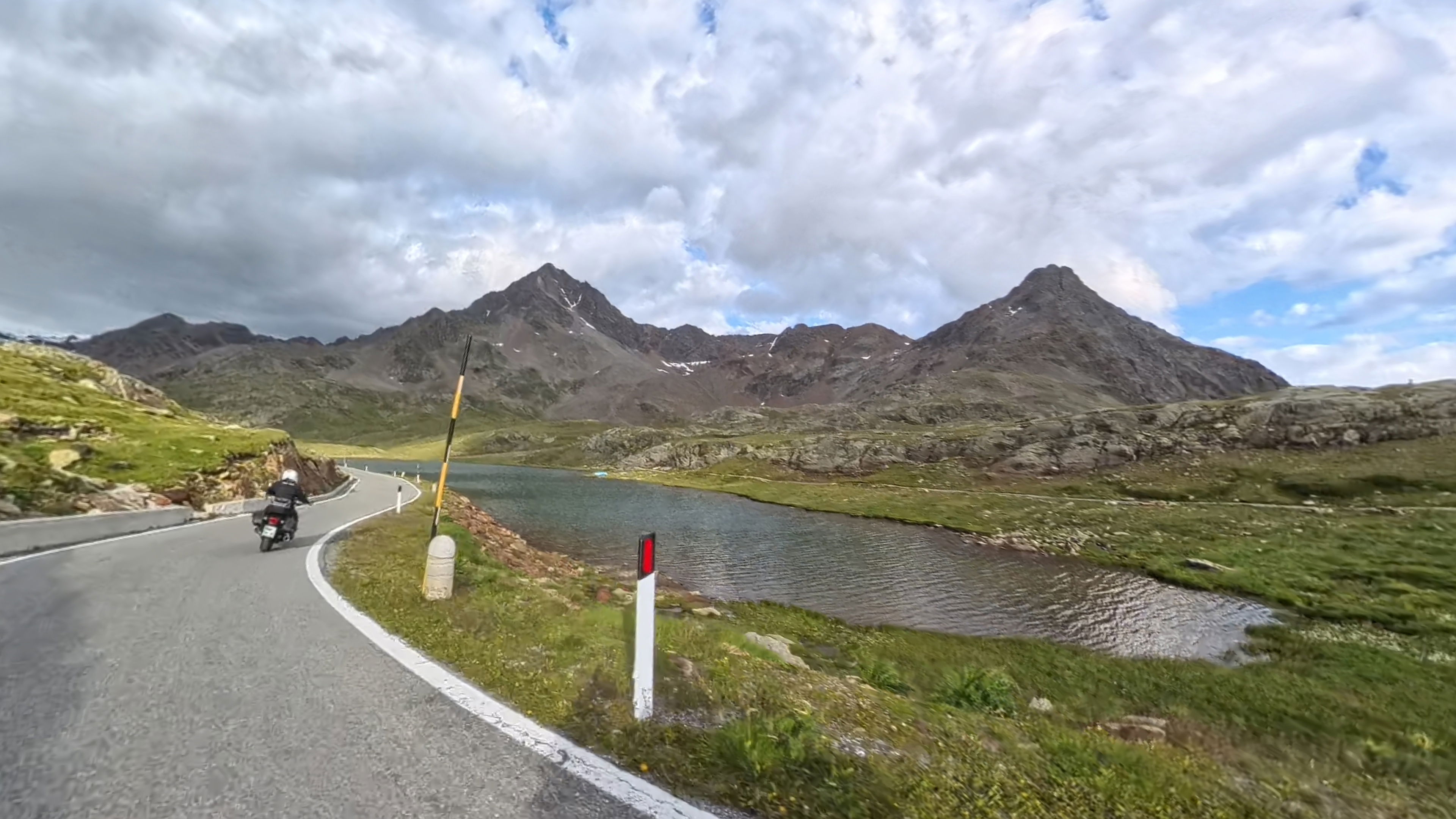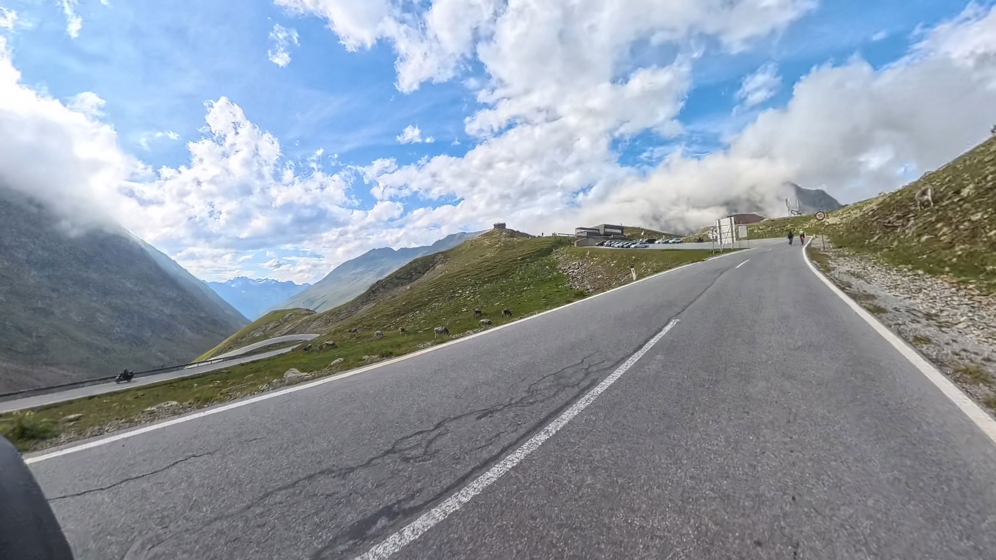 Temperature so še sveže, a tudi to je čar višjih gorskih prelazov. Ko se s prelaza spuščamo, nasproti prične prihajati že kar nekaj prometa in predvsem kolesarjev.