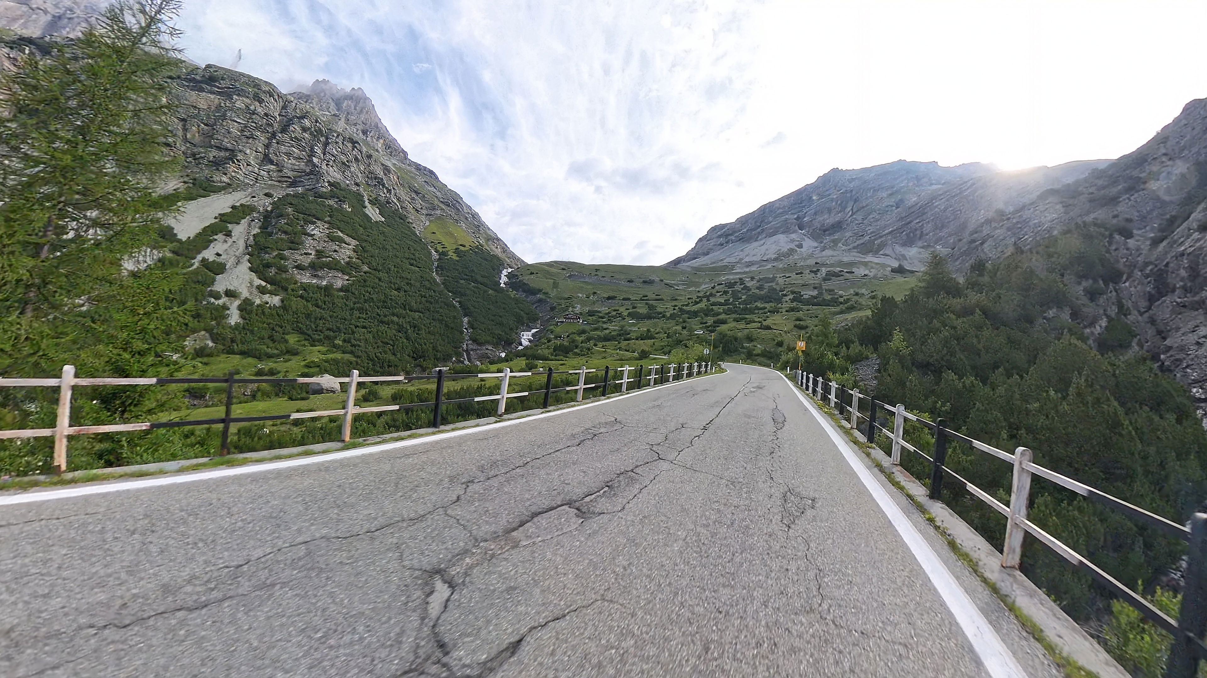 Po vseh 48 serpentinah, ki tvorijo vzhodno stran prelaza, se spustimo do Prada, tam pa zavijemo levo proti prelazu Resia.