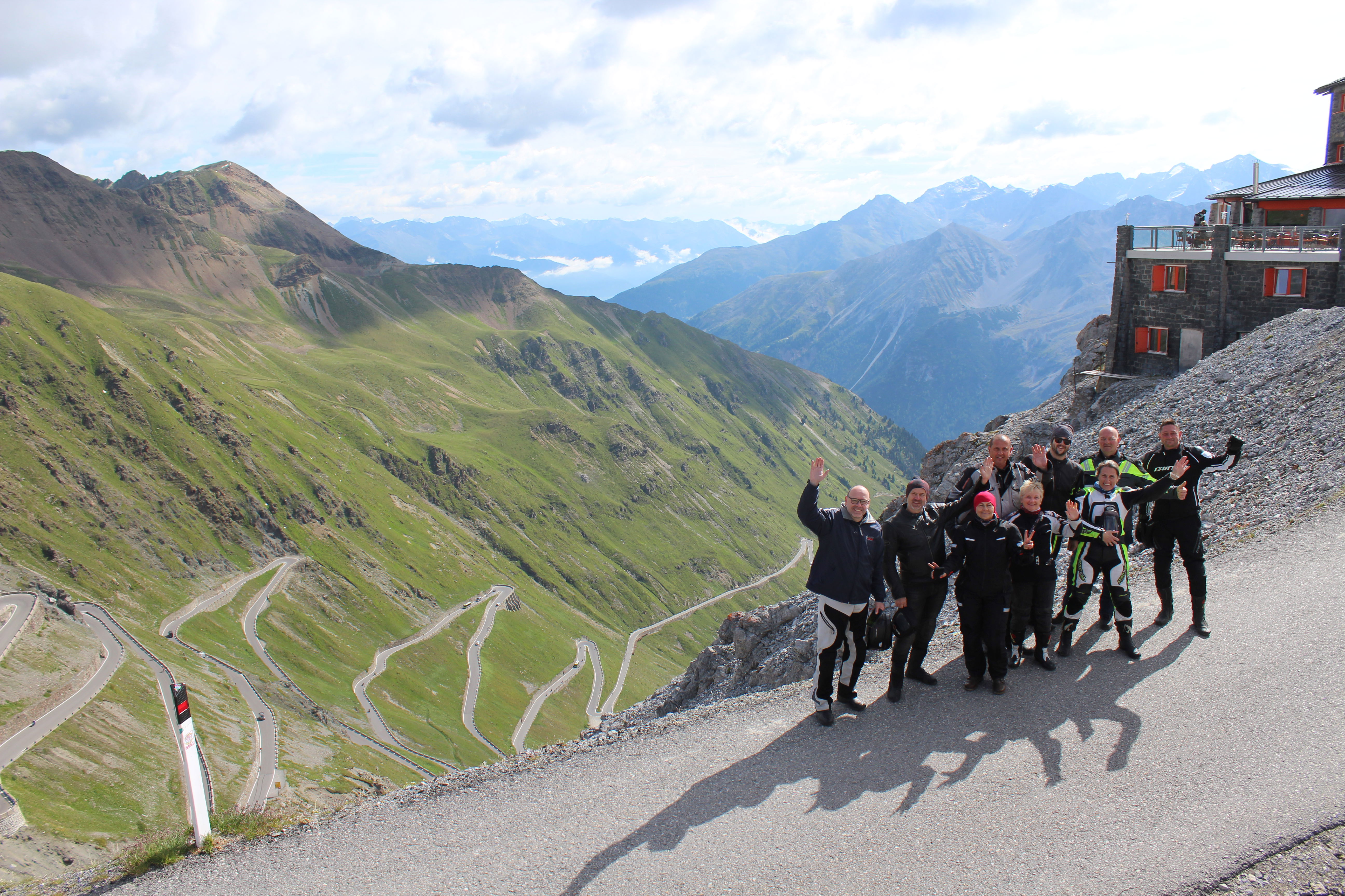 Na vrhu se počakamo in se potem odpeljemo še višje, do koče Tibethütte, od koder je vedno tako lep razgled na famozne serpentine Stelvia.