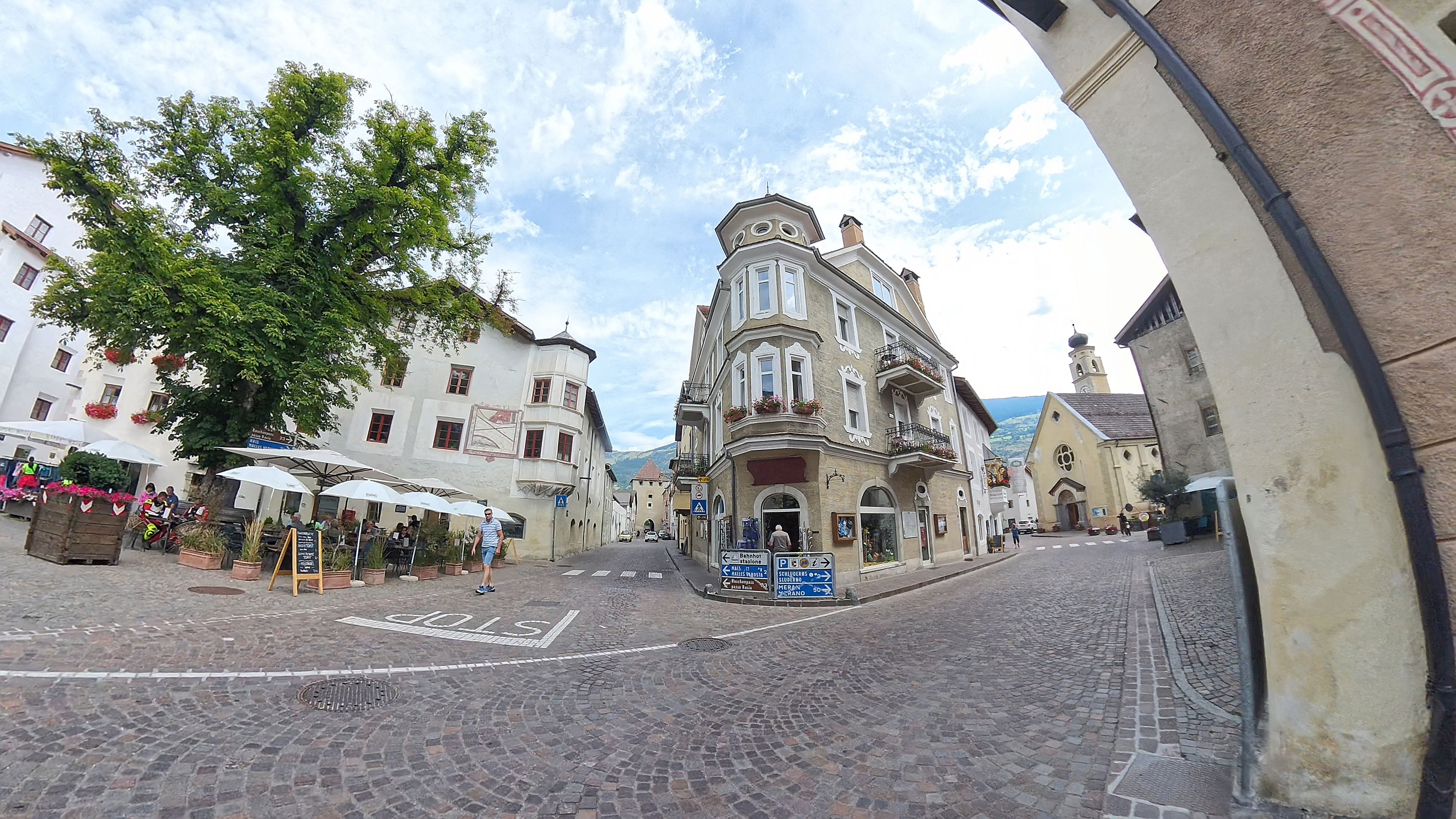S prelaza le speljemo v rahlem dežju, nato se vreme prične popravljati, med Vipitenom in Bressanone se nam pa zopet prikaže sonček. Kdor se je na prelazu oblačil v dežjaka, se tu zopet slači. Za čas našega postanka na bencinski črpalki, promet postaja vse gostejši. Vožnja do Brunecka je je zato kar malo mučna, a to tukaj moramo vzeti v zakup, tukaj je vedno gneča.