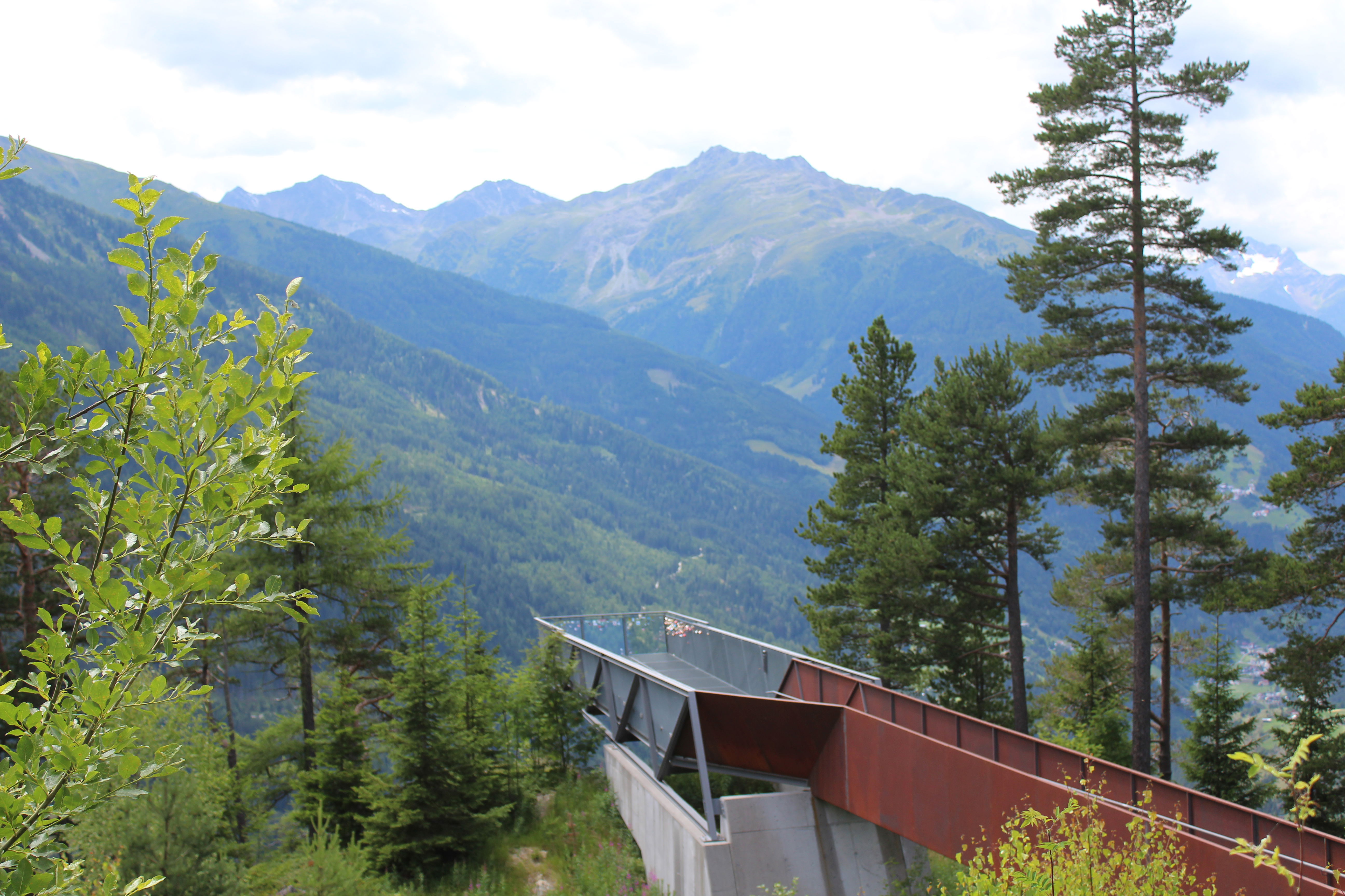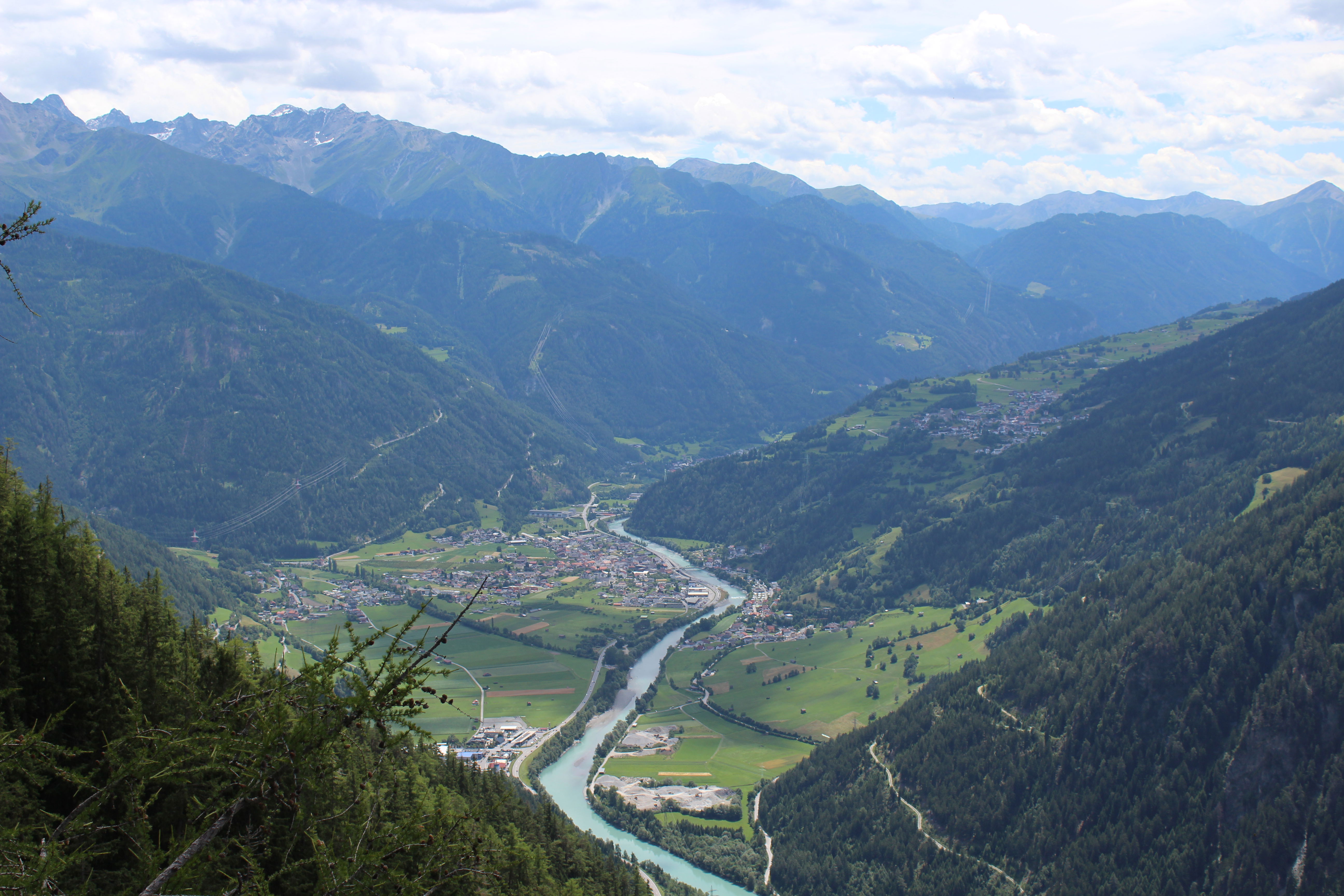 V dolini še zavijemo na bencinsko črpalko in natočimo polne rezervoarje, potem pa se spet odpravimo v višave, na Pillerhöhe. Sprehodimo se do razgledne ploščadi Gachenblick. Stojimo nad drevesnimi krošnjami in opazujemo dolino reke Inn s pripadajočimi naselji.