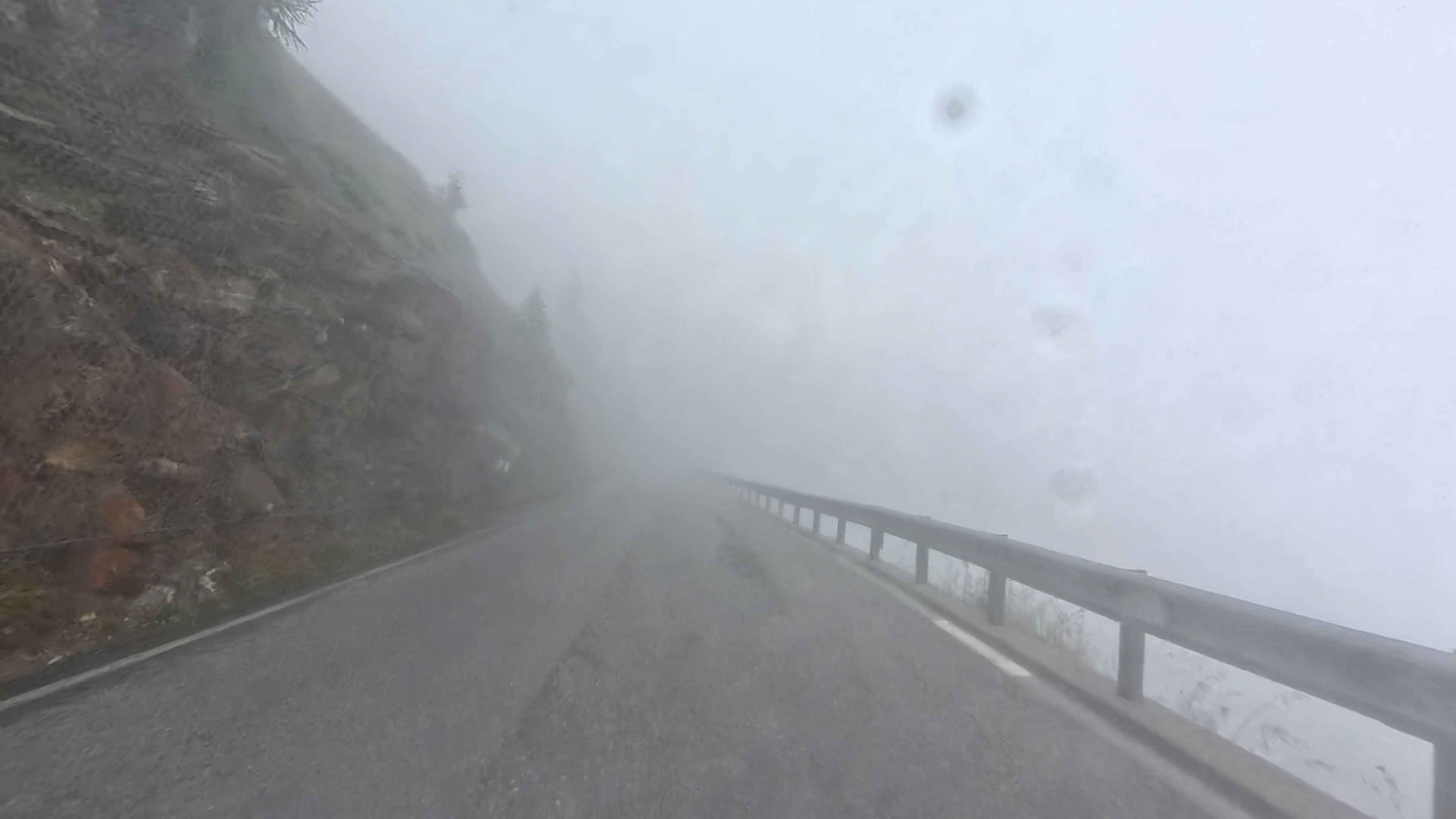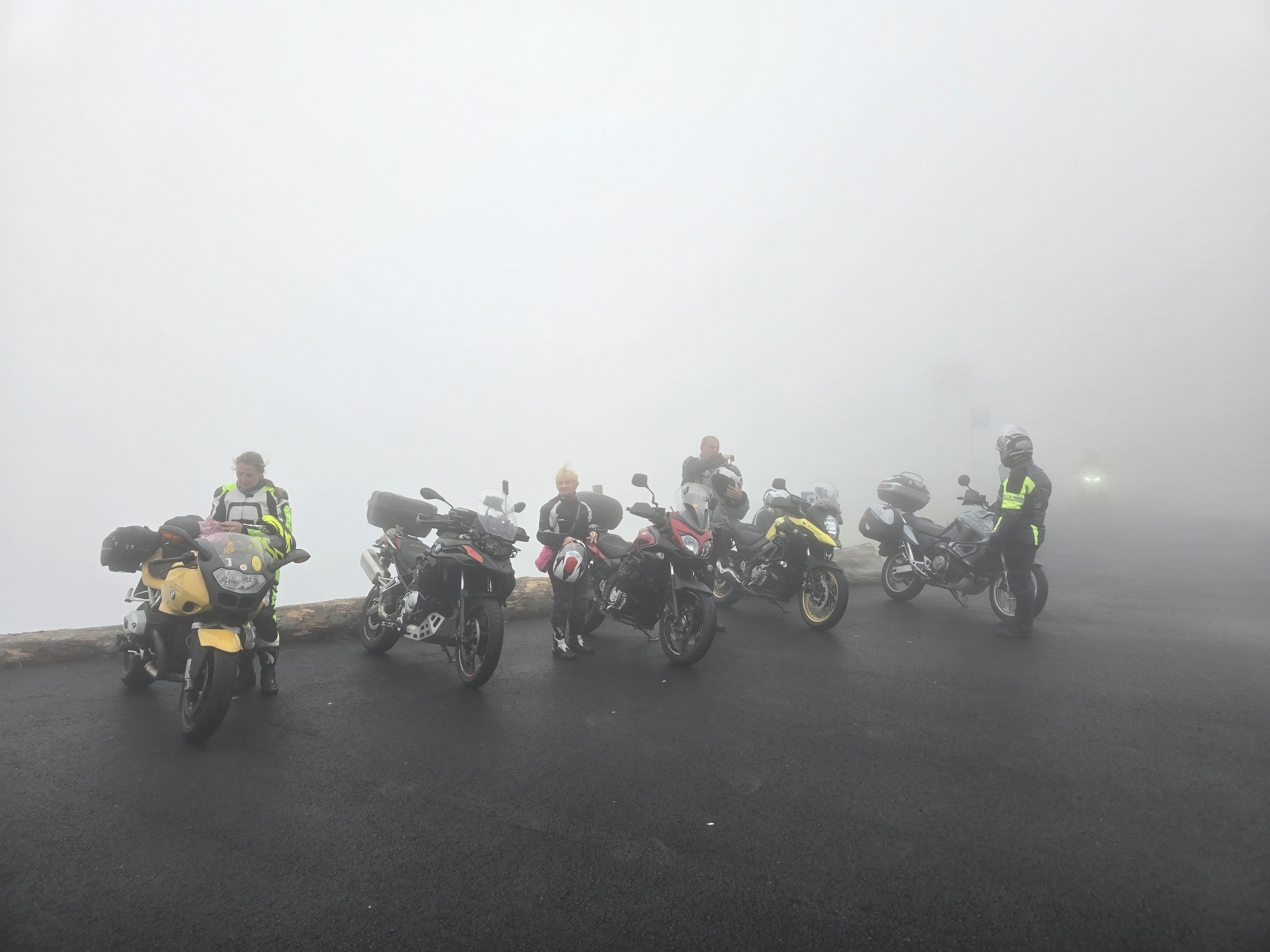 Tokrat se prebudimo v megleno jutro, kar je v teh krajih dokaj običajno. Nimamo se kaj pritoževati, smo imeli pa prejšnje dni zato toliko lepše vreme. Na tako megleno jutro ob zajtrku prija že skodelica čaja. Pogled na radarsko sliko padavin nam pove, da bomo danes mogoče naleteli na kakšno krajevno ploho, a ne bo nič kritičnega. Skozi meglo proti vrhu prelaza se prebijamo zanašujoč na navigacijo.